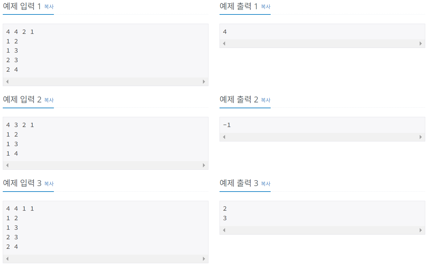 첫째 줄에 도시의 개수 N, 도로의 개수 M, 거리 정보 K, 출발 도시의 번호 X가 주어진다. (2 ≤ N ≤ 300,000, 1 ≤ M ≤ 1,000,000, 1 ≤ K ≤ 300,000, 1 ≤ X ≤ N) 둘째 줄부터 M개의 줄에 걸쳐서 두 개
