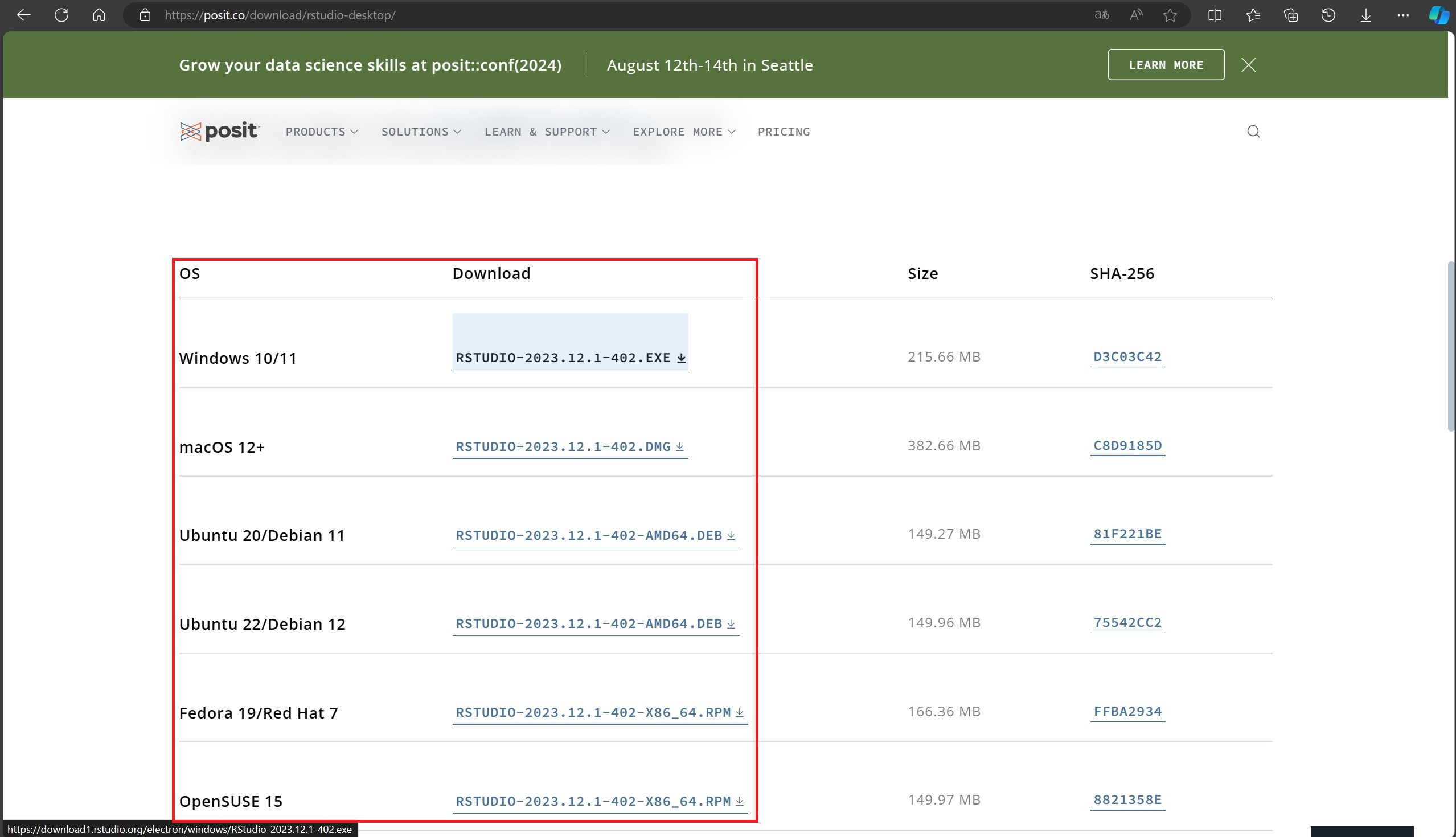 다음으로 R Studio를 설치해 보면, 마찬가지로 위의 링크에 접속하여 환경에 맞는 파일을 다운로드해 준다.