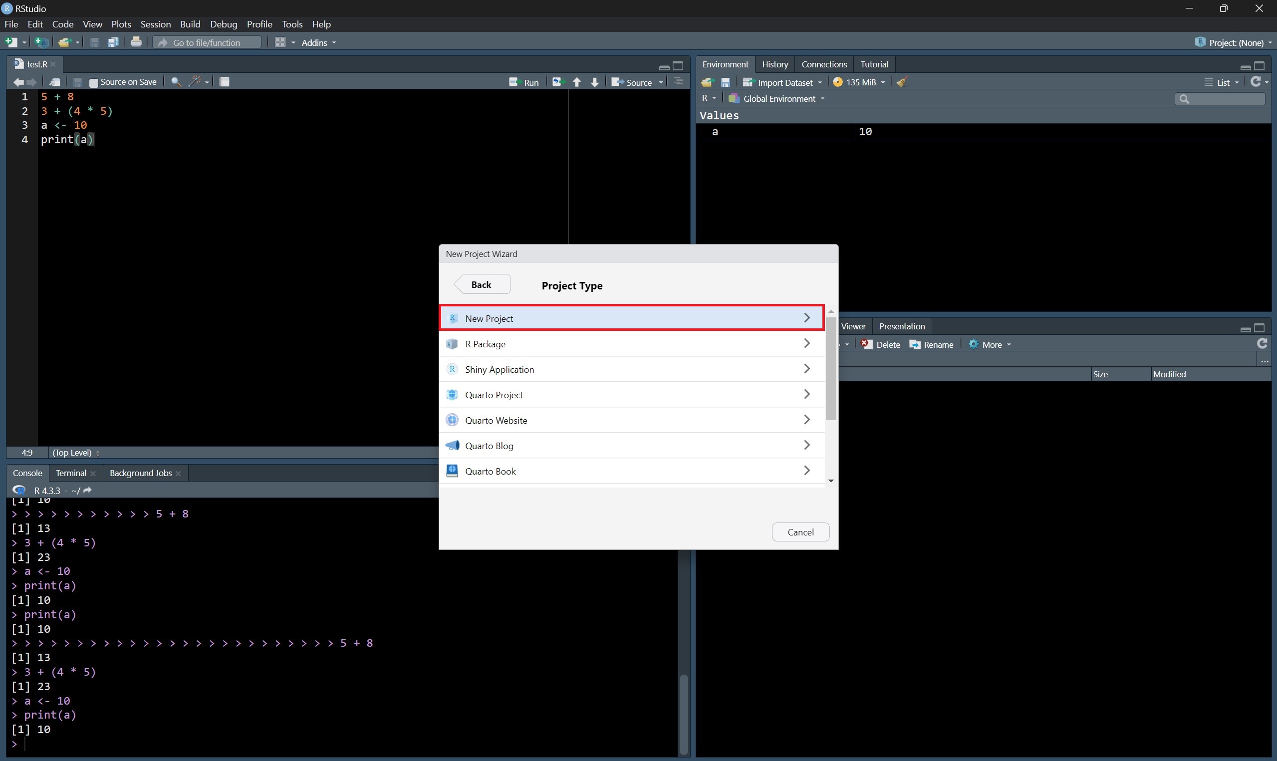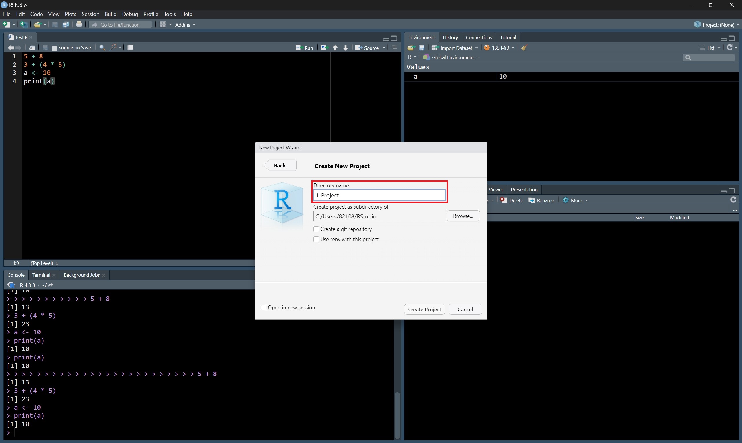 여러 R 스크립트 파일과 각종 데이터 등을 한꺼번에 저장할 프로젝트를 만들어준다.