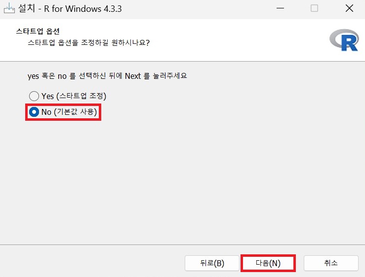구성 요소 설치에서 필요한 항목을 선택하고 스타트업 옵션에서는 No를 선택한다.