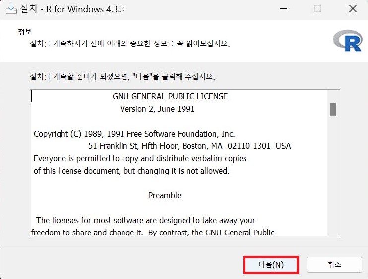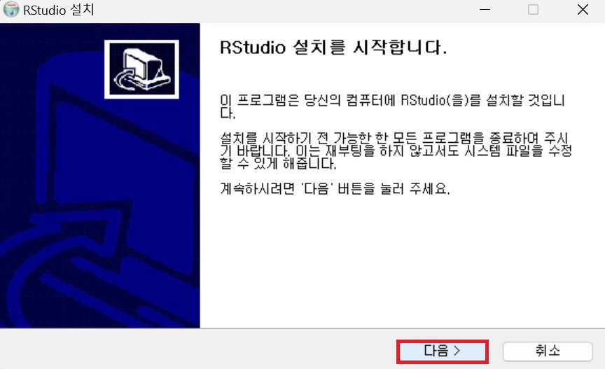 설치 파일이 다운로드되면 계속하여 다음을 누르면서 설치를 해준다.