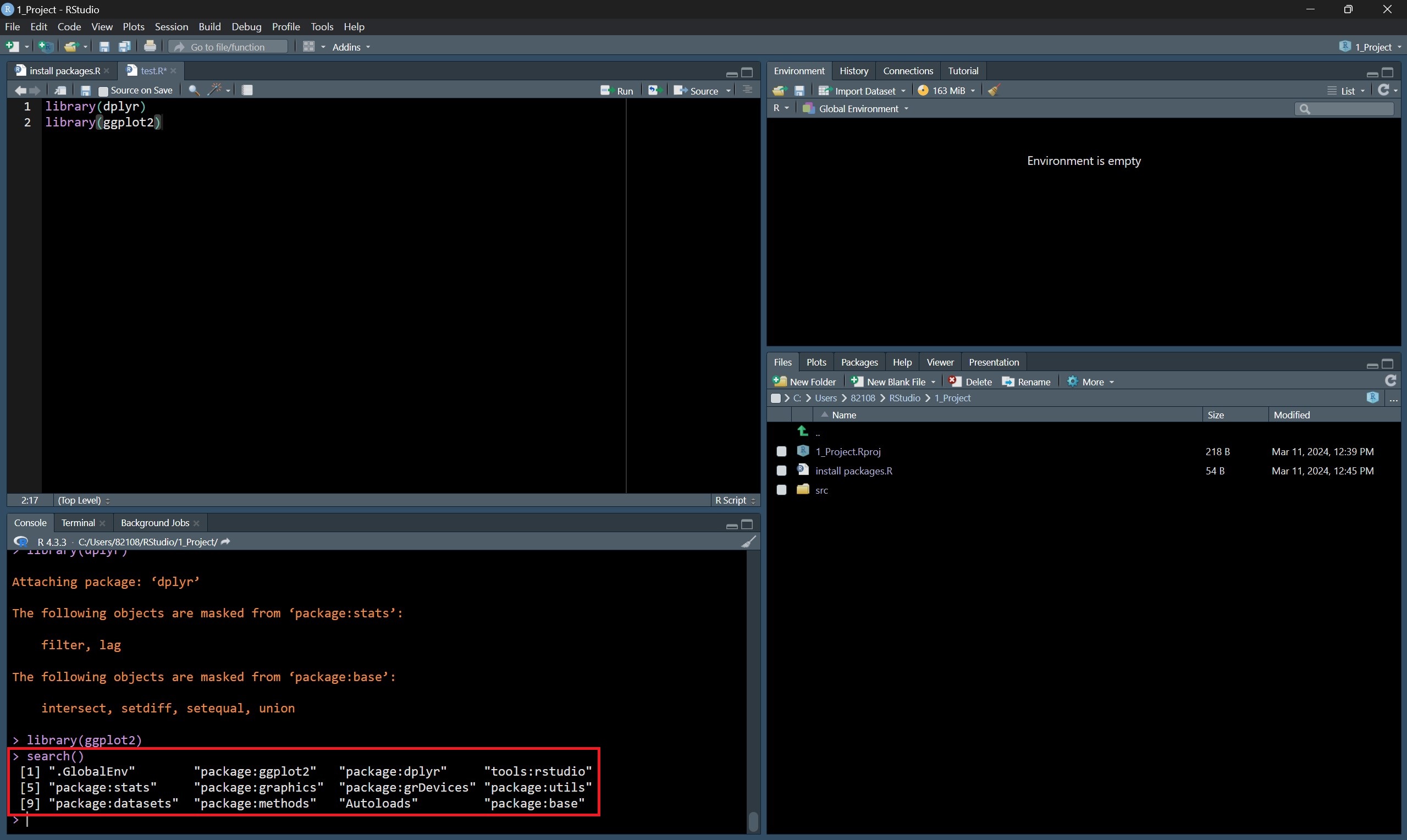 특정 함수를 사용하기 위해서는 해당 함수를 포함하고 있는 패키지를 미리 설치하고 불러와야 한다.