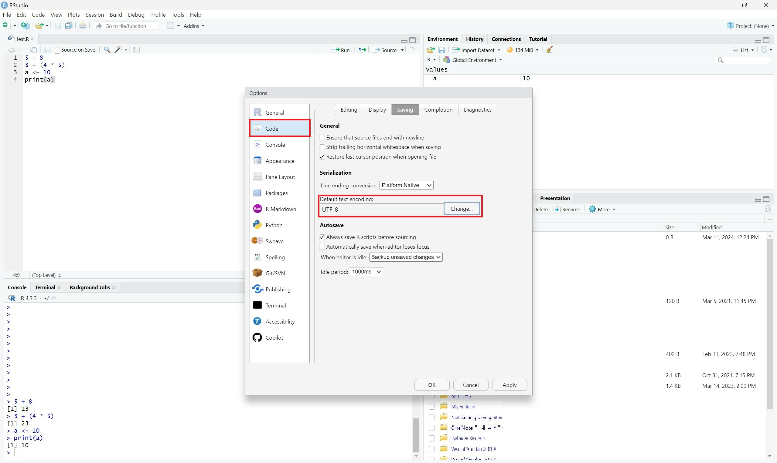 우선 General 설정을 보면, R version은 실행할 R 버전을 나타낸다.