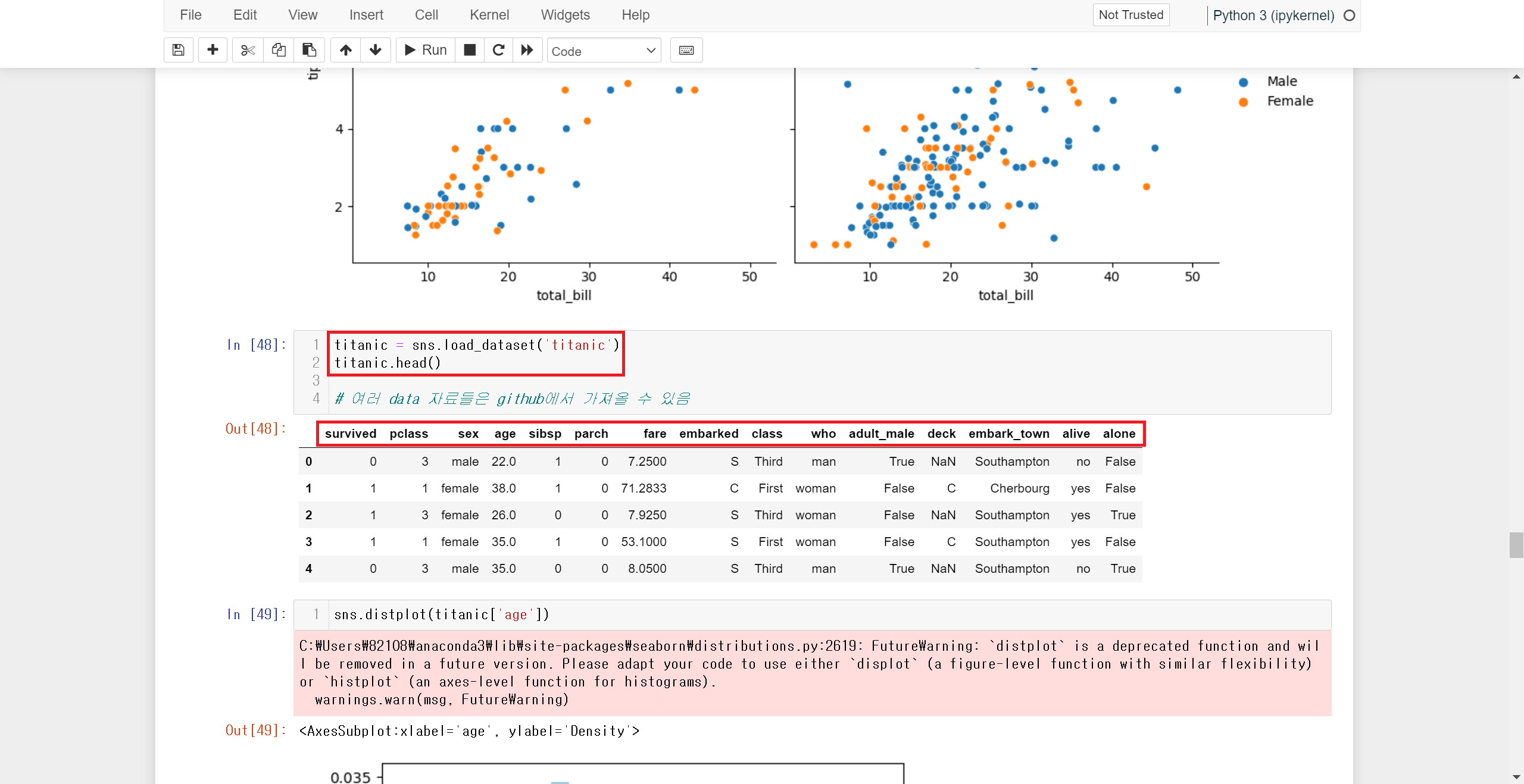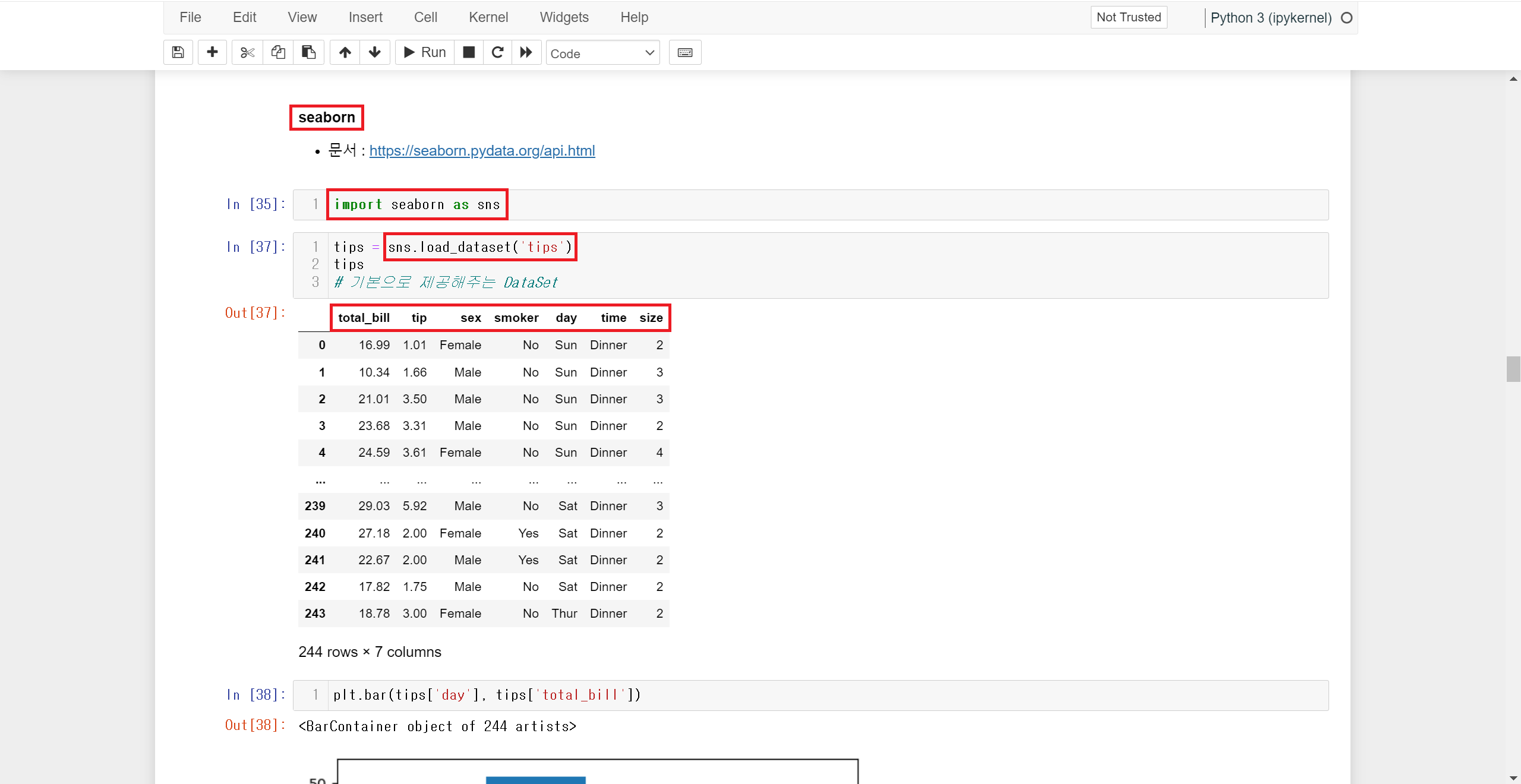 이렇게 이전에는 matplotlib를 사용해 시각화를 했다면 이번에는 seaborn을 사용해 시각화를 해보도록 하겠습니다.