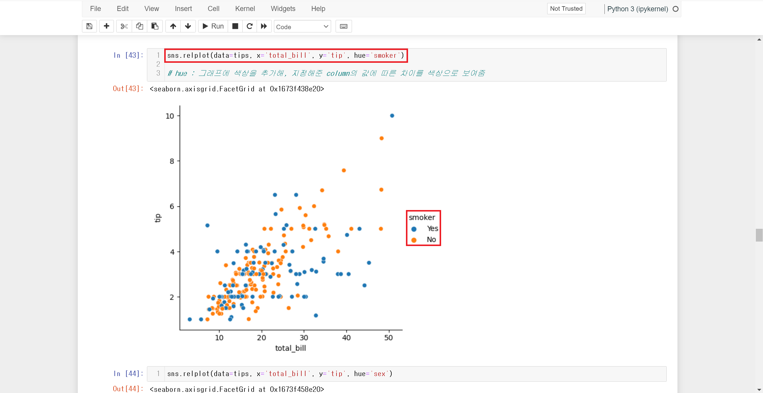 seaborn에서 중요하게 사용하는 옵션인 hue 옵션을 살펴보겠습니다.