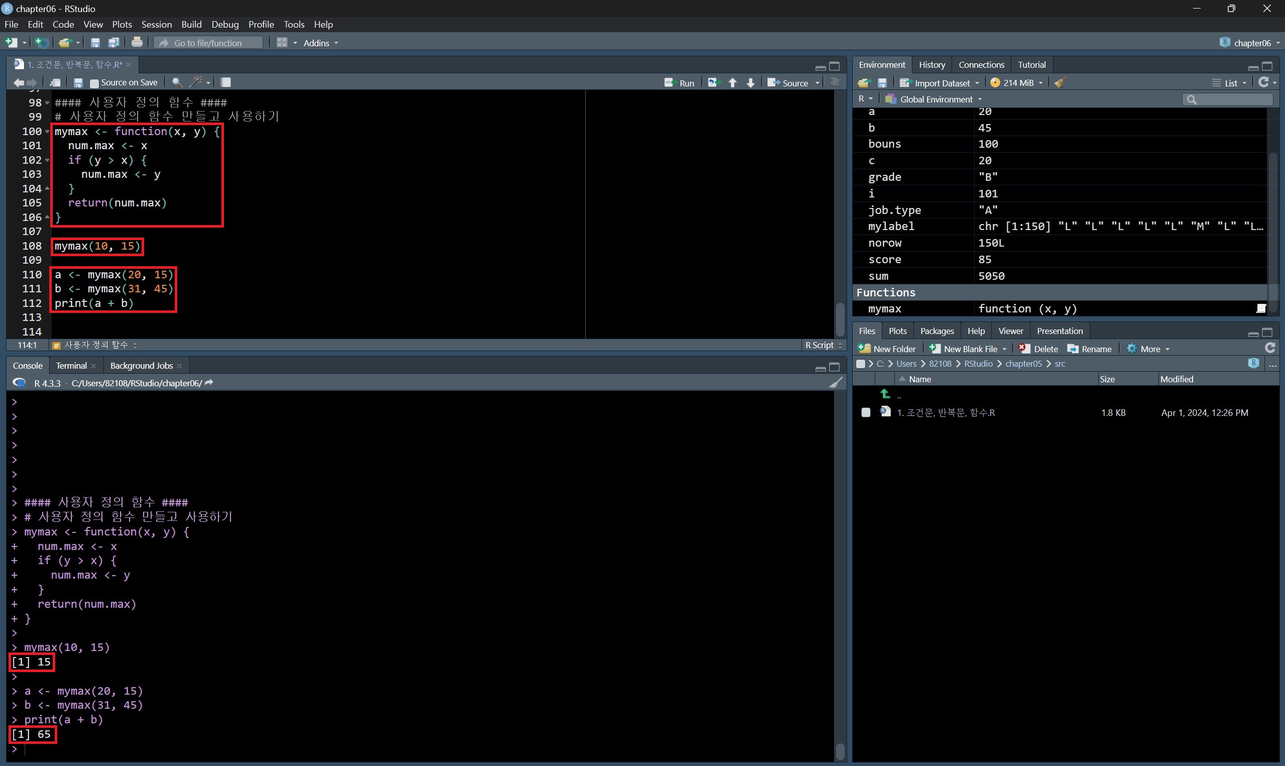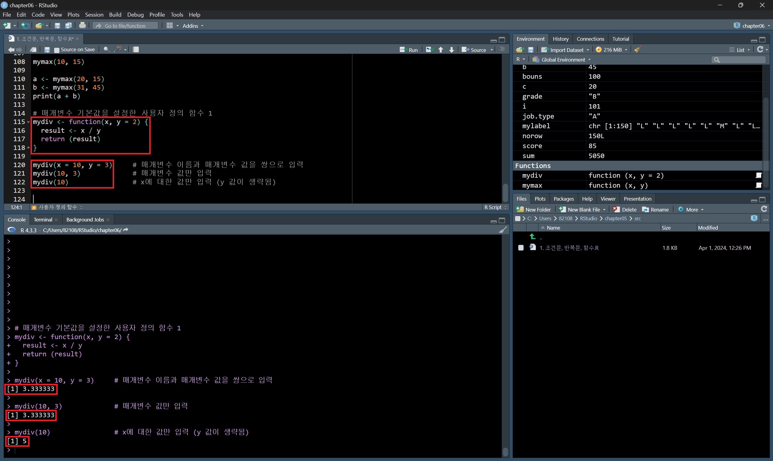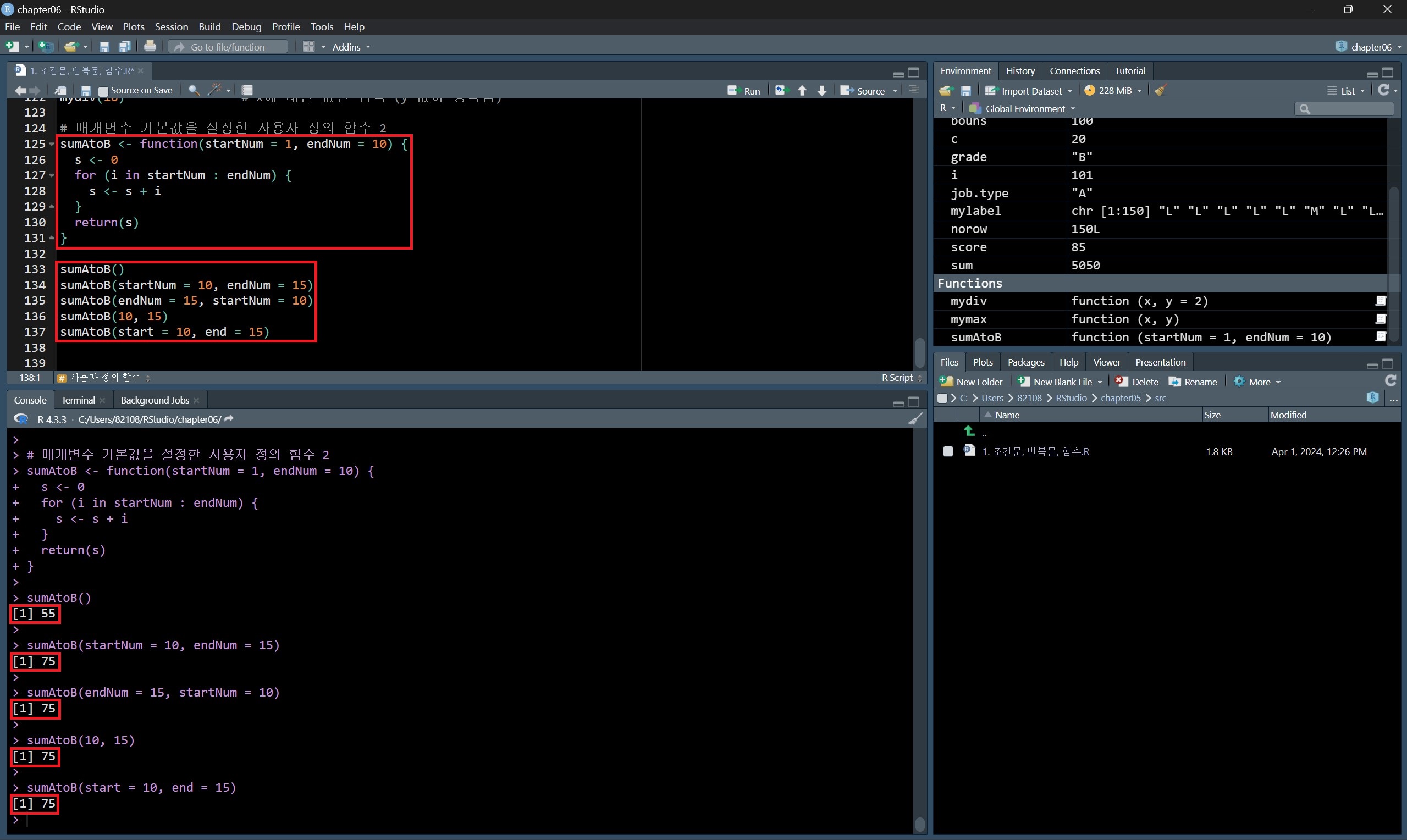함수를 저장한 파일을 source() 함수에 넣어 해당 함수를 불러올 수 있고, 불러온 함수는 위에서 함수를 호출하는 방식으로 호출하여 사용하면 된다.