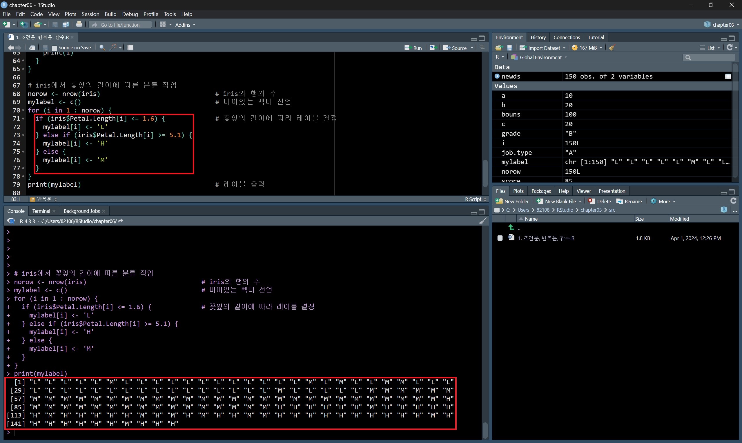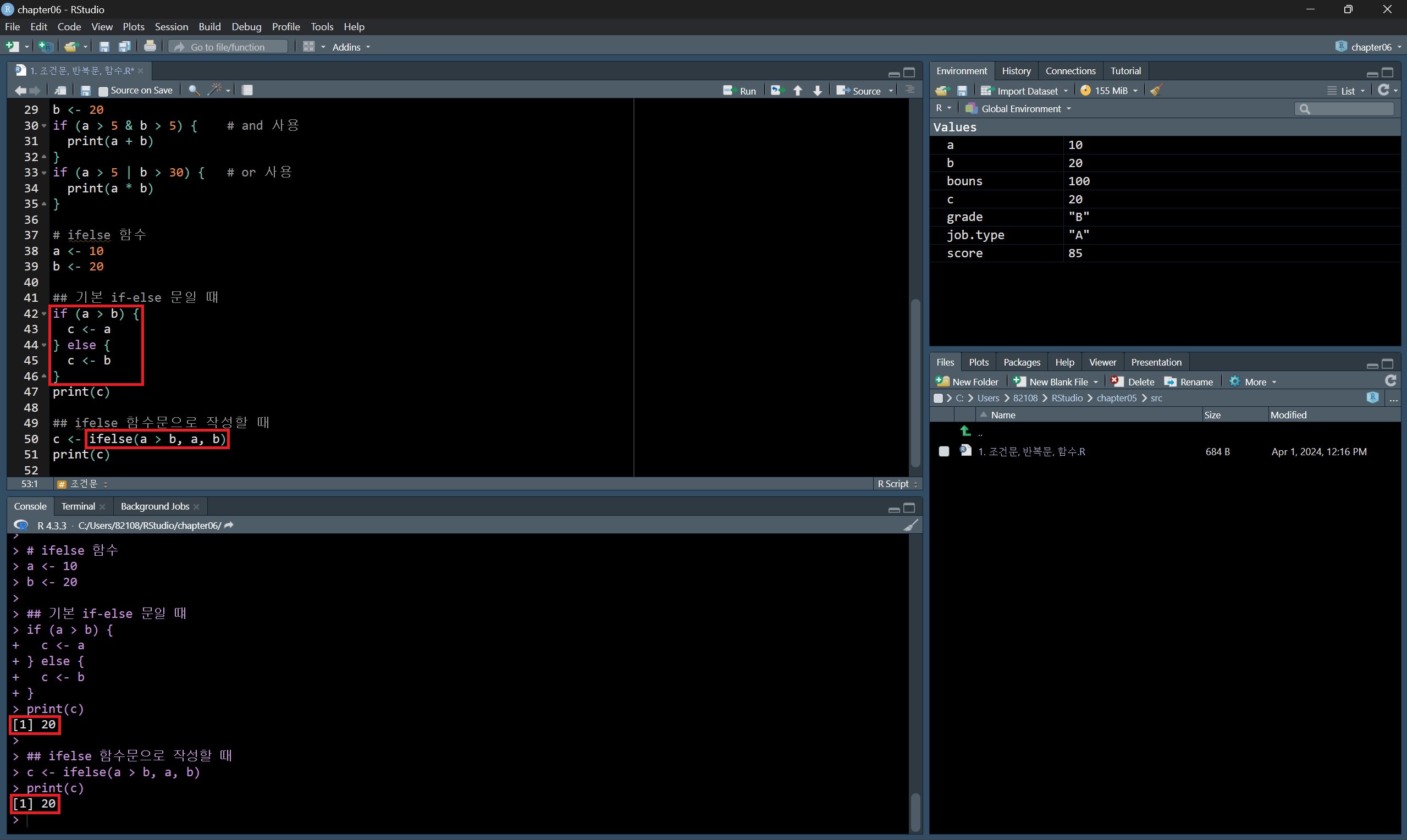 | [R 공부하기] 6. 단일변수 자료 탐색 - 우당탕탕 개발자 되기 프로젝트 (0) | 2024.04.23 |