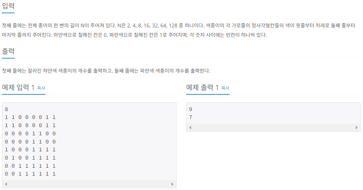 https://www.acmicpc.net/problem/2630