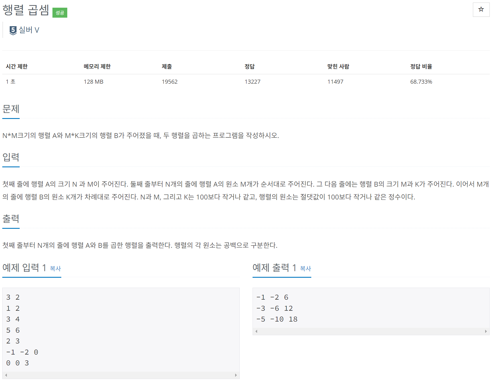해당 문제는 간단히 행렬 곱셈을 구현해 보는 문제이다.