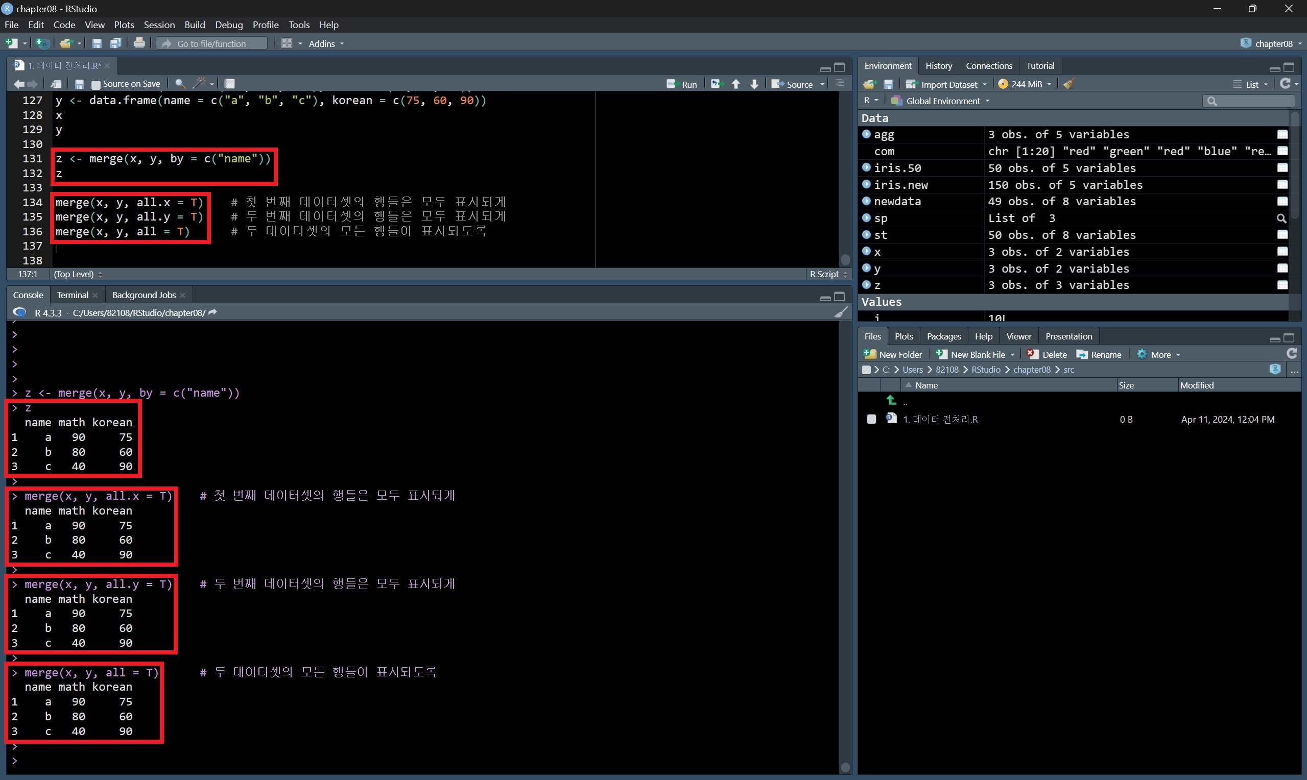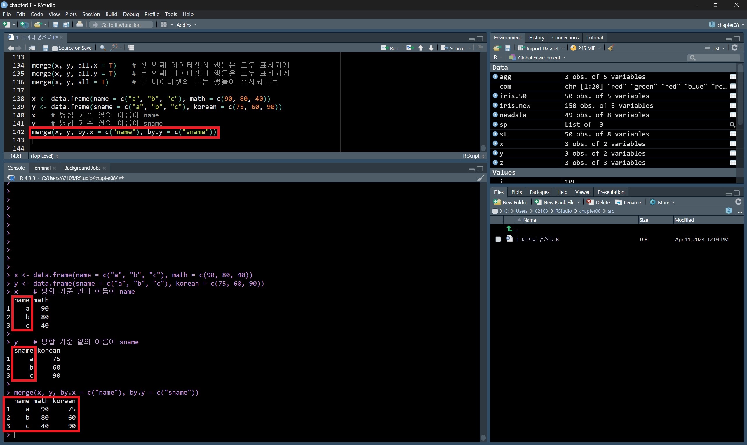 데이터를 병합할 때는 merge() 함수를 활용한다.