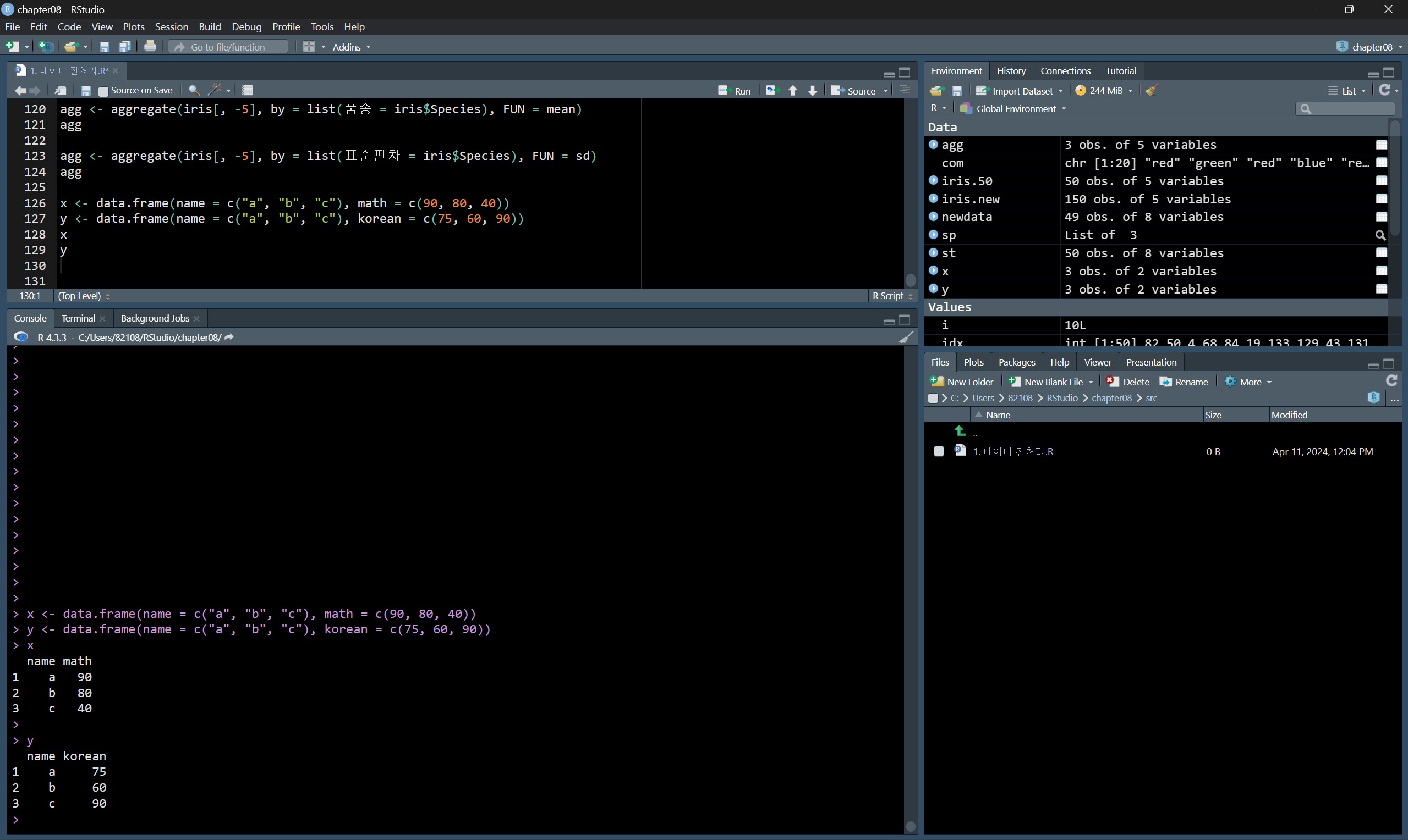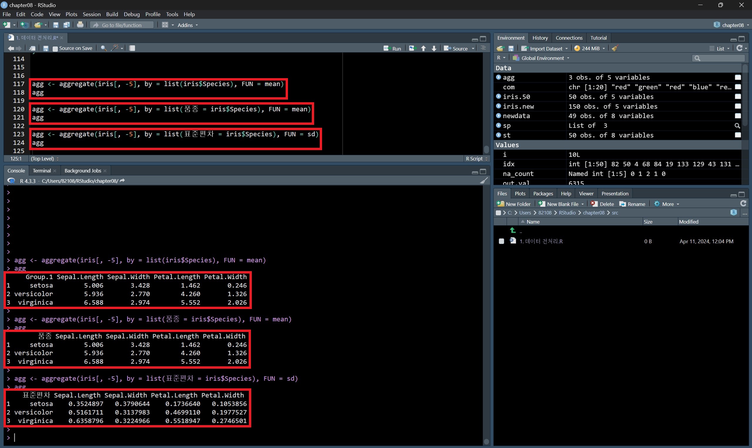 R에서는 aggregate() 함수를 통해 집계 작업을 수행한다.