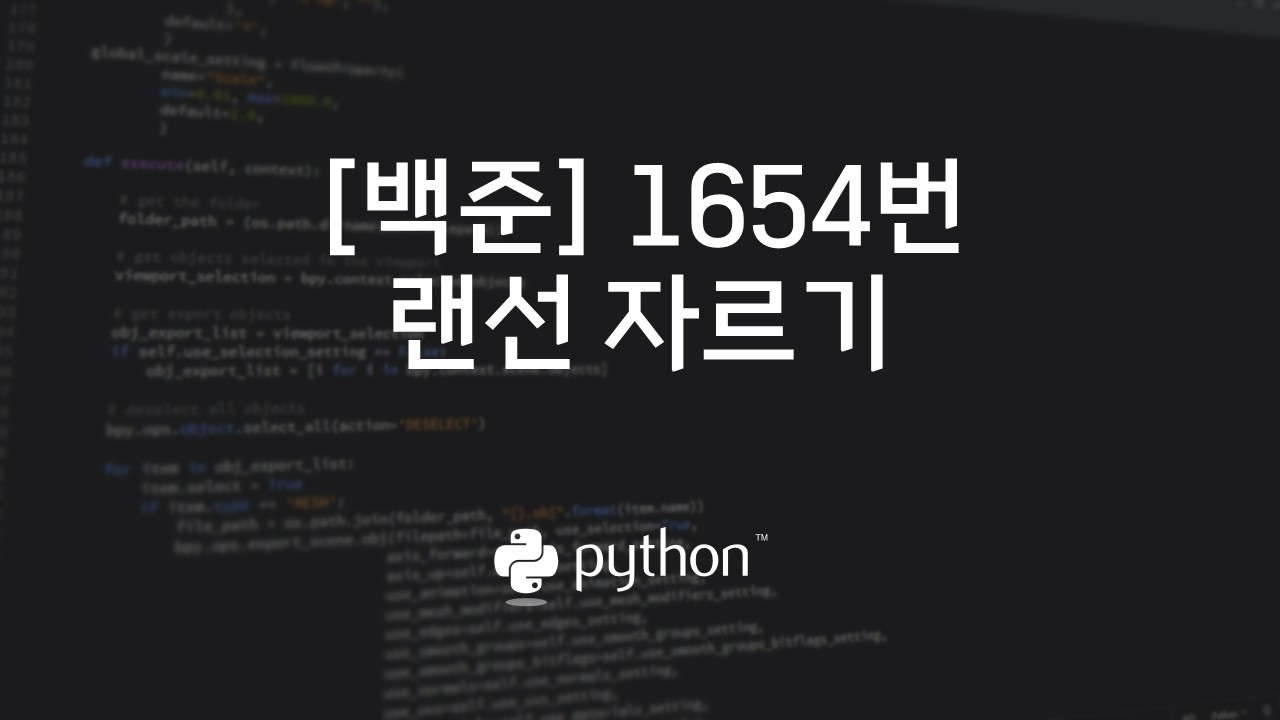 - 처음 가지고 있는 랜선의 개수만큼 반복하며 각 랜선의 길이를 입력받아 리스트에 추가한다. for _ in range(K): li.append(int(sys.stdin.readline()))