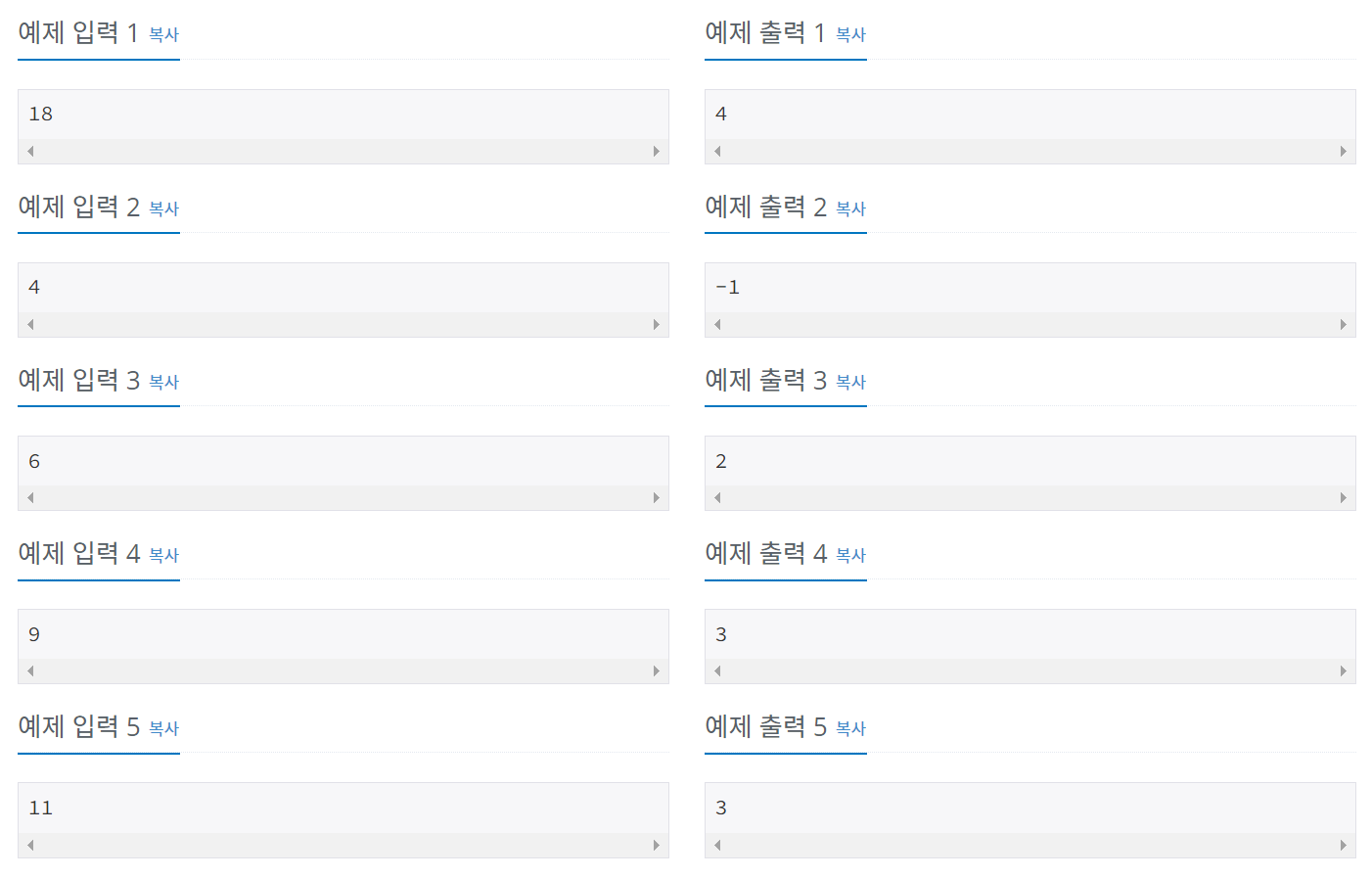 - 만약 정확하게 무게를 맞출 수 없다면 -1을 출력한다. else: print(-1)