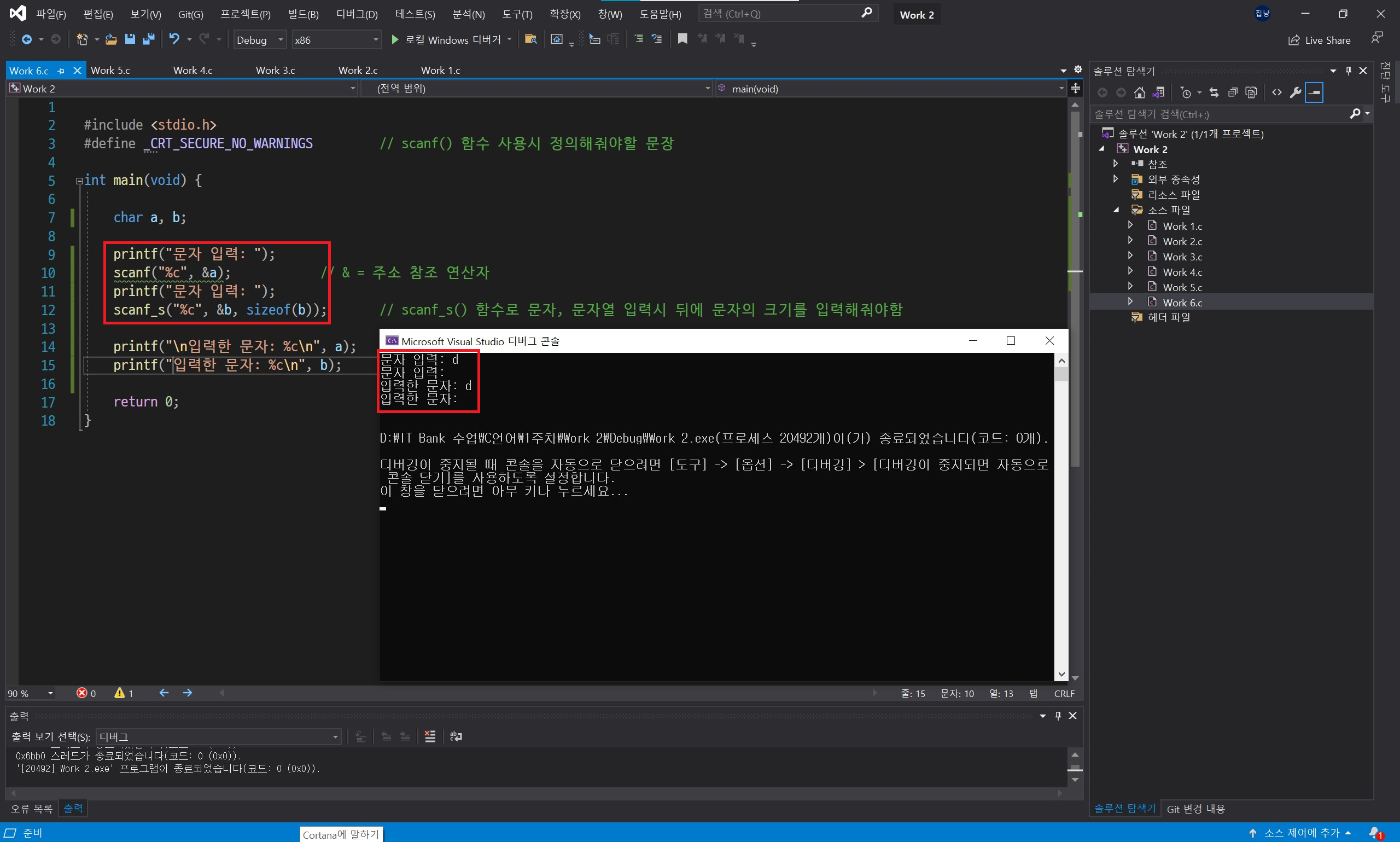 아니면 scanf_s() 함수를 사용하는 방법도 있습니다만 scanf_s() 함수를 사용하면 반드시 제일 뒤에 입력하고자 하는 데이터의 크기를 지정해줘야 합니다.