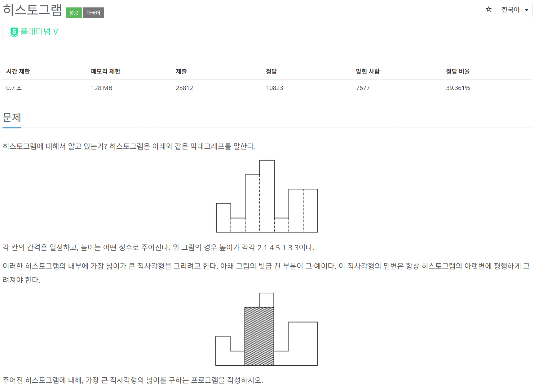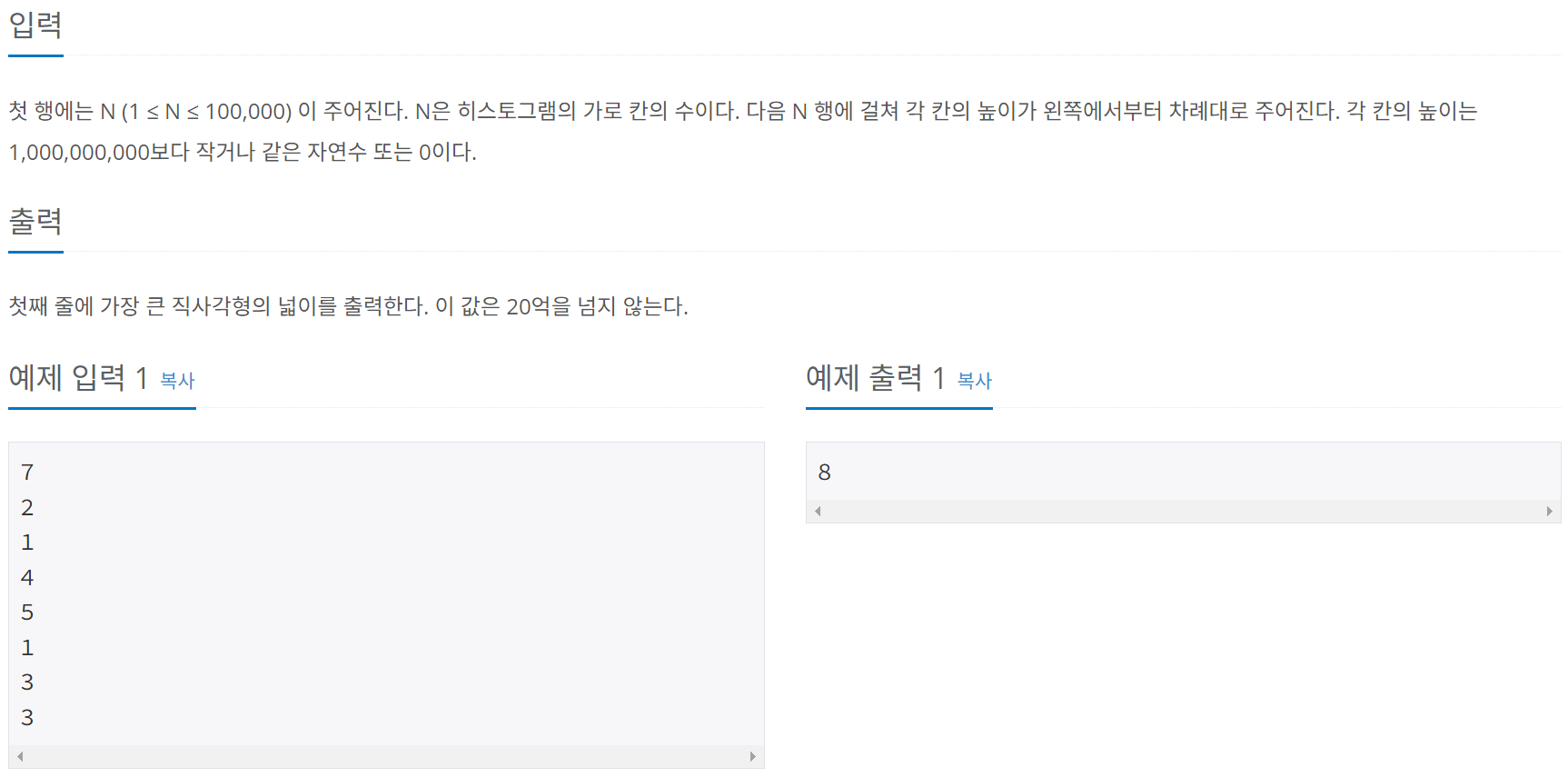 하지만 이전 6549번 문제와 다른 점은 시간 제한이 1초에서 0.7초로 줄었다는 점이다.