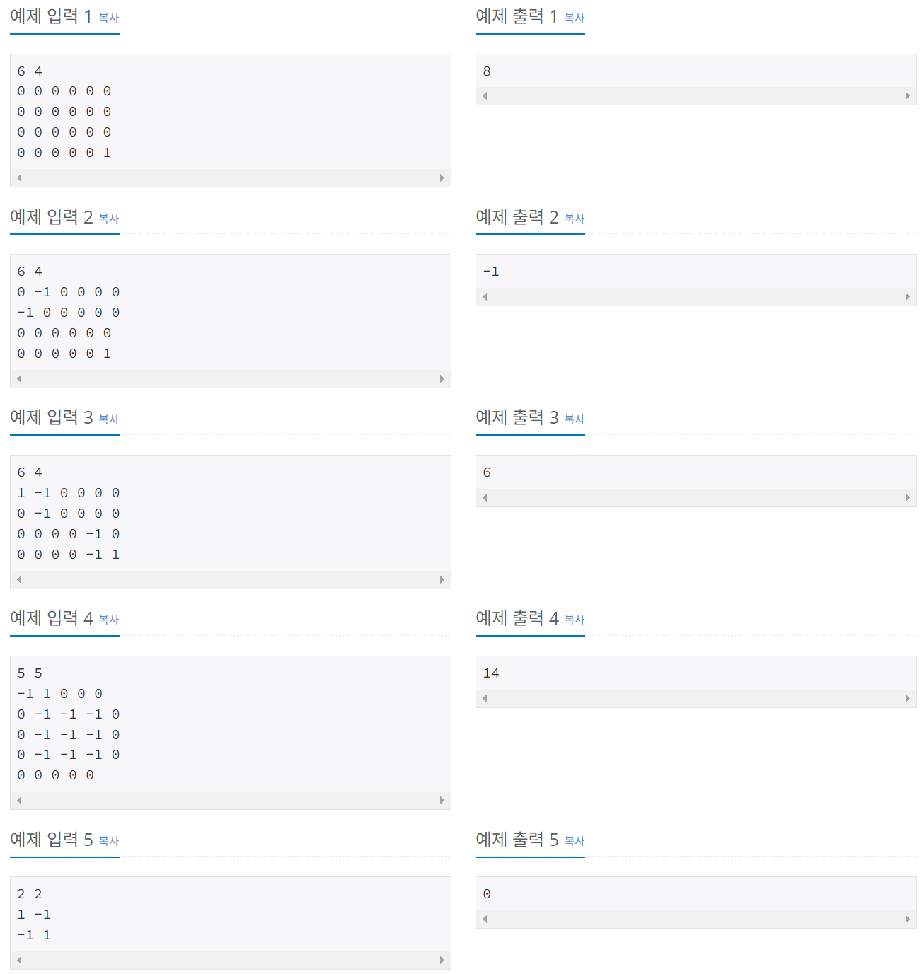 만약 저장될 때부터 모든 토마토가 익어있는 상태이면 0을 출력해야 하고, 토마토가 모두 익지 못하는 상황이면 -1을 출력해야 한다.