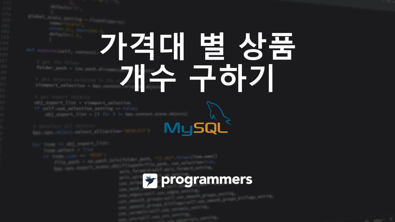 이후 가격대 별로 상품의 개수를 조회해야 하므로 구한 가격대 정보를 기준으로 그룹으로 나눈 후, 각 그룹별 데이터의 개수를 COUNT() 함수로 세어 가격대 별로 상품의 개수를 조회한다.