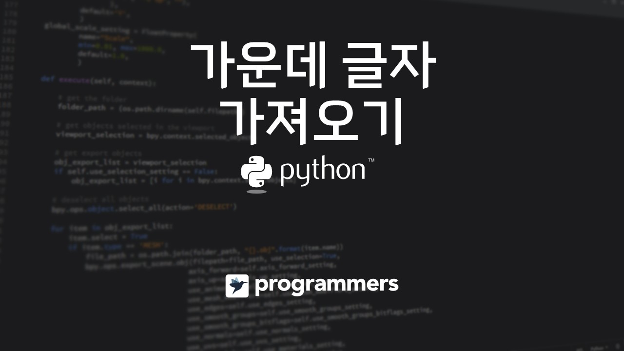 - 가운데 두 문자를 출력해야 하므로 우선 가운데 두 문자 중 앞 문자를 추가한다. answer += a[len(s) // 2 - 1]
