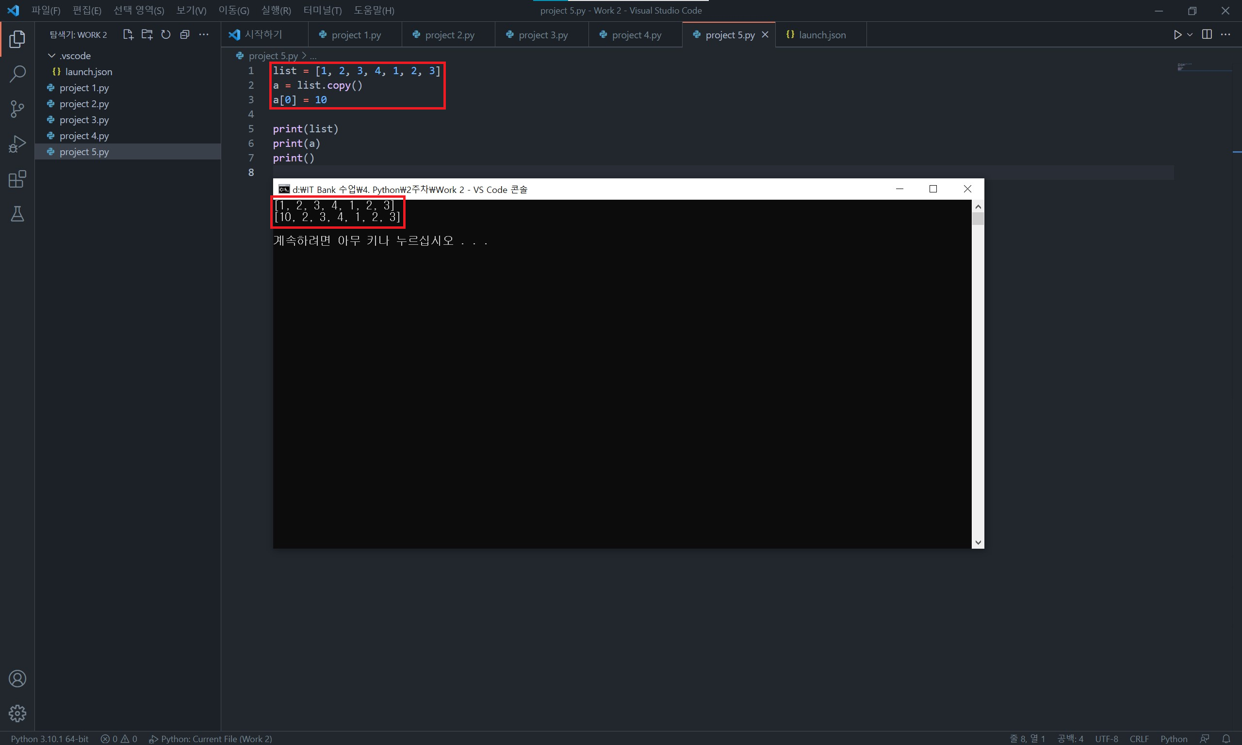 변수명 = 리스트명.copy() 형식으로 작성해 주면 리스트를 변수에 그대로 복사해 줍니다.