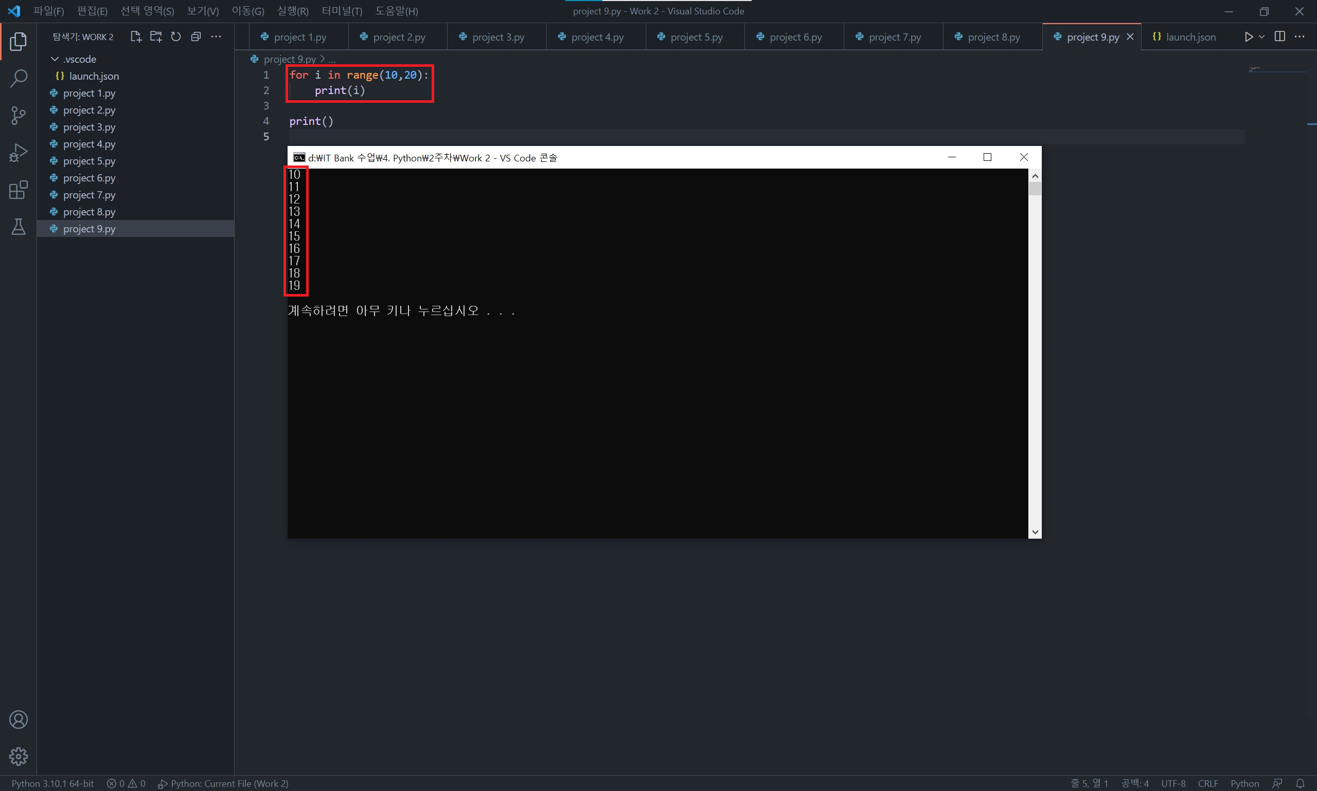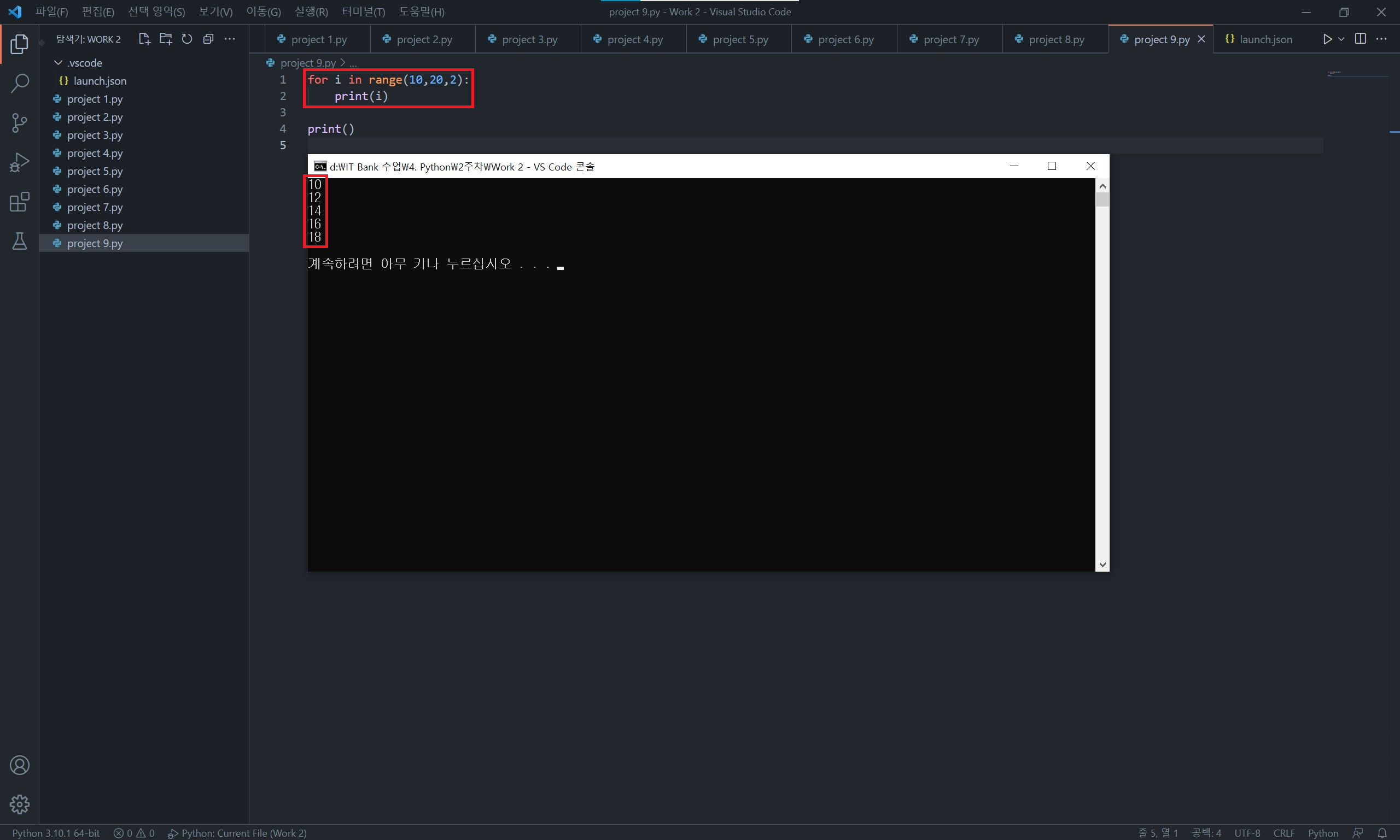range() 함수는 수의 범위를 지정하여 리스트로 반환하는 함수입니다.