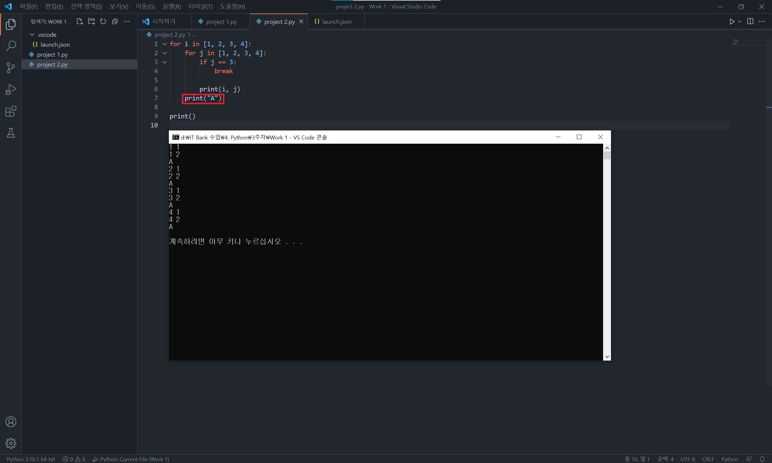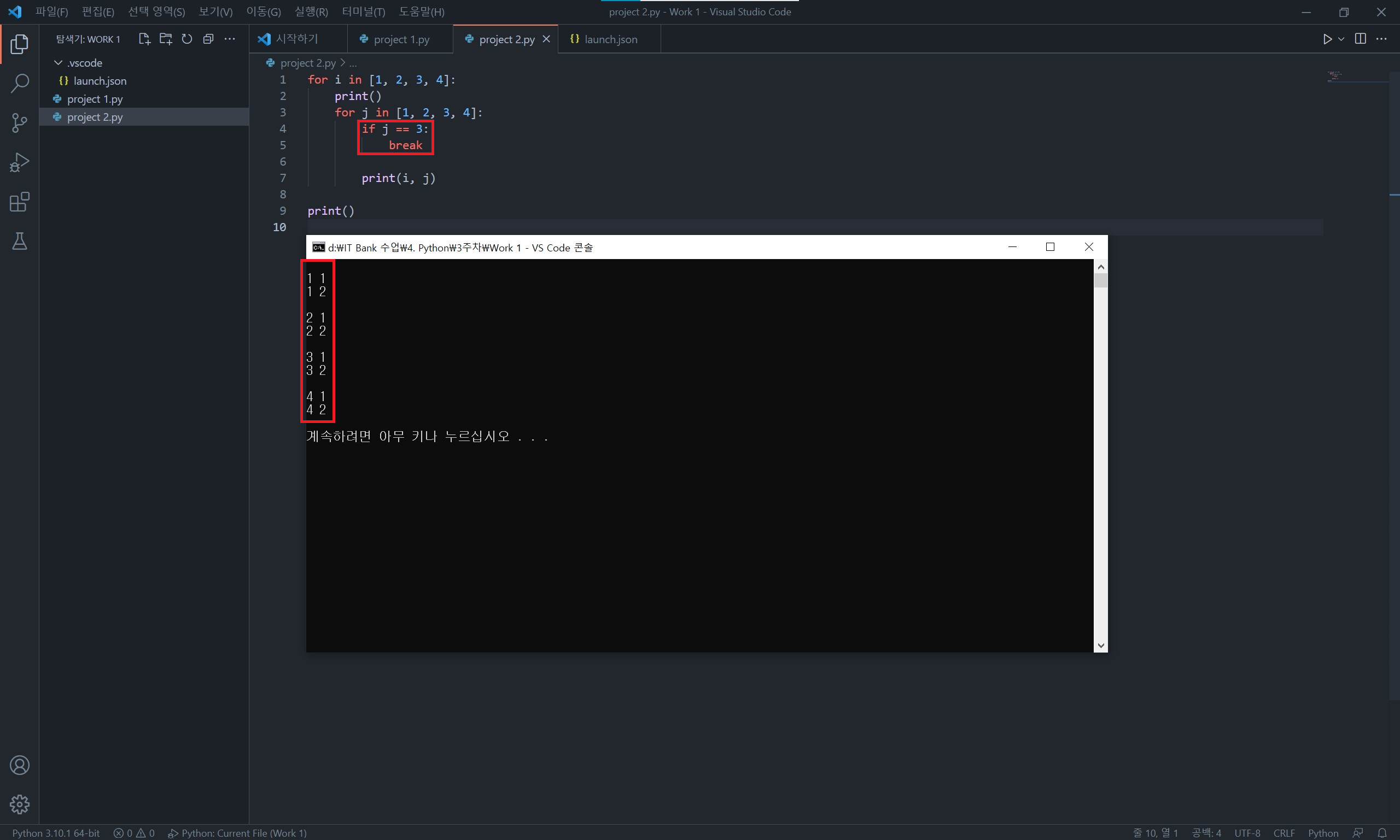 반복문을 사용할 때 원하는 시점에서 탈출하고 반복문을 재시작하는 방법을 살펴보면, 반복문을 탈출하는 방법은 break 문을 사용하는 것입니다. break 문은 반복문 안에서만 사용할 수 있습니다. 또한 break 문을 사용하면 가장 가까운 반복문 하나만 빠져나오게 됩니다.