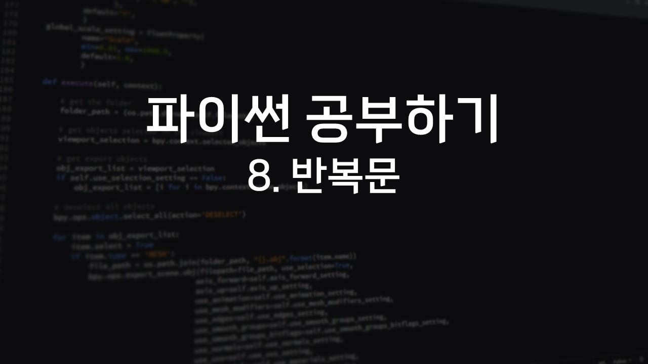 반복문 중 for 문을 먼저 보면, for 문은 반복 횟수가 명확할 때 주로 사용하는 반복문입니다.