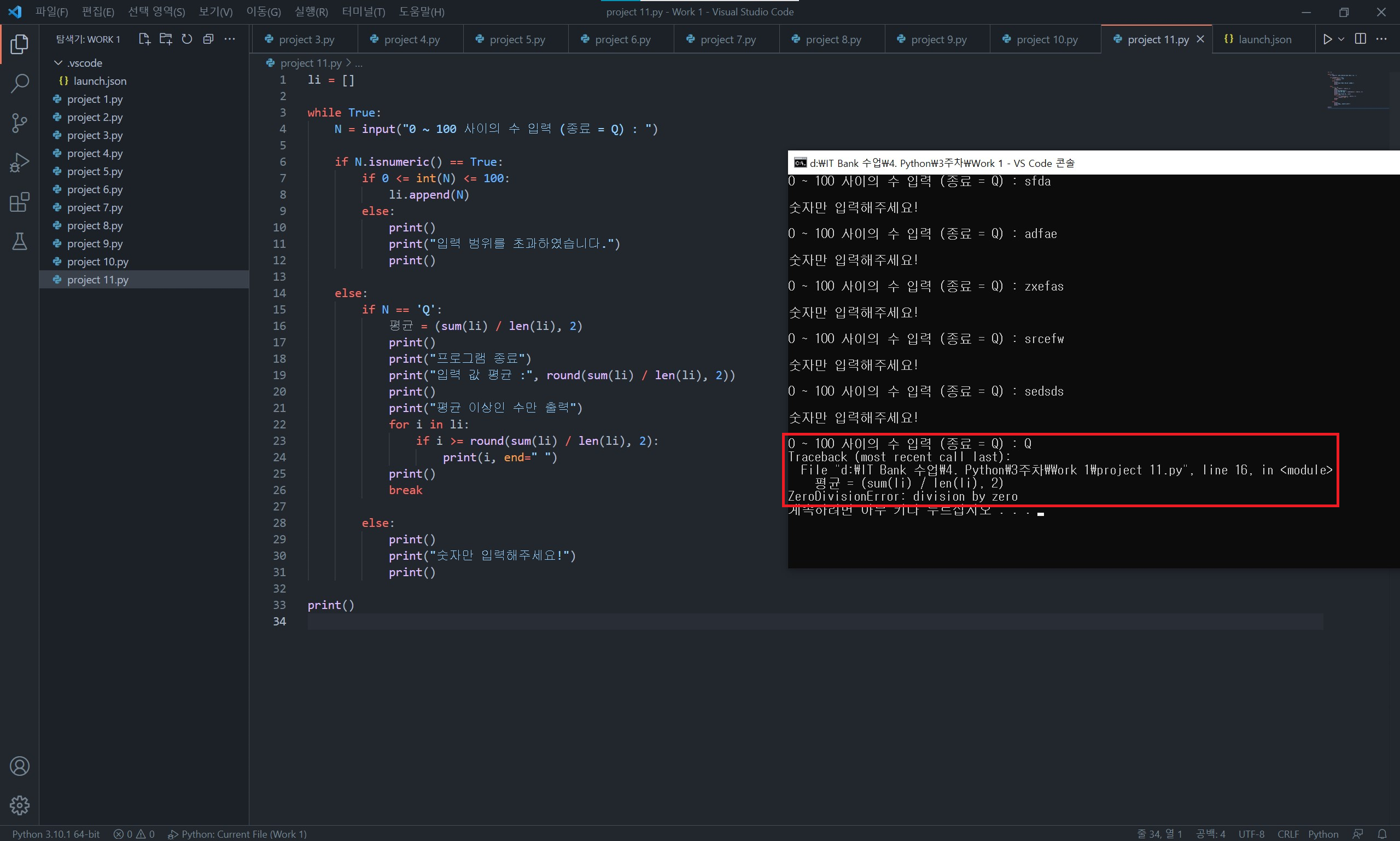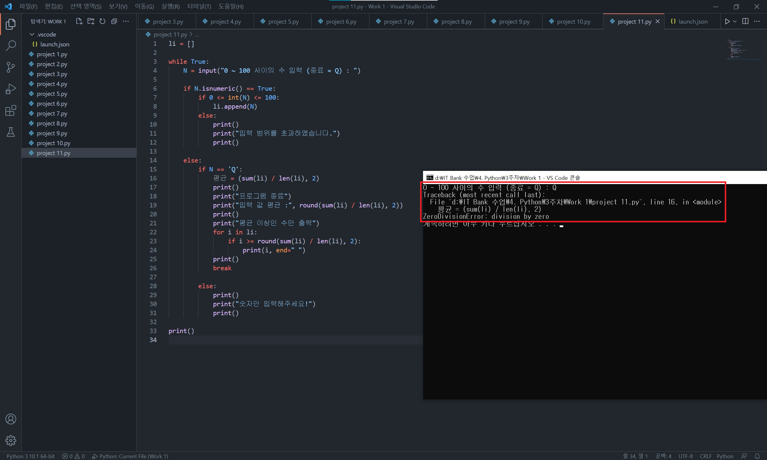 한 가지, 0을 나누는 연산이나 0으로 나누는 연산은 오류가 납니다.