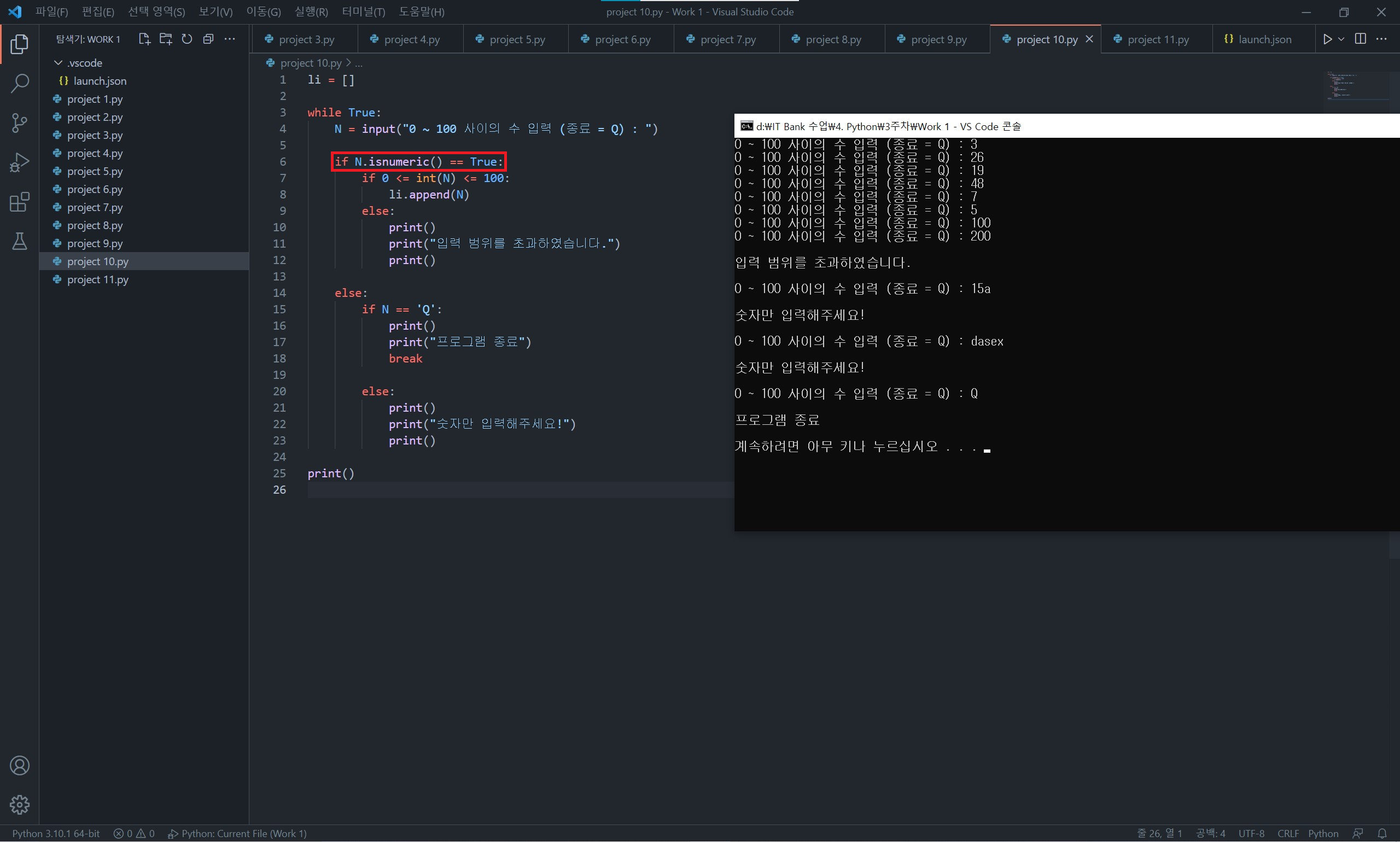 isnumeric() 함수는 문자열이 숫자로만 구성되어 있는지 아닌지 확인해 주는 함수입니다.