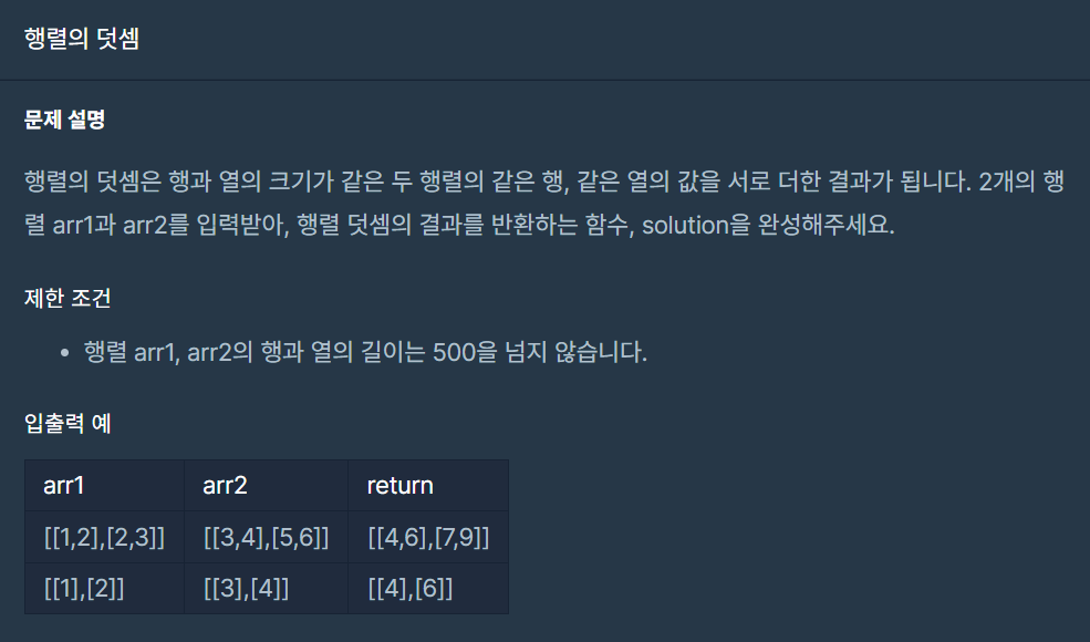 - 각 행 안에서 각 열의 크기만큼 연산하여 결과를 임의의 리스트에 저장한다. for j in range(len(arr1[i]))