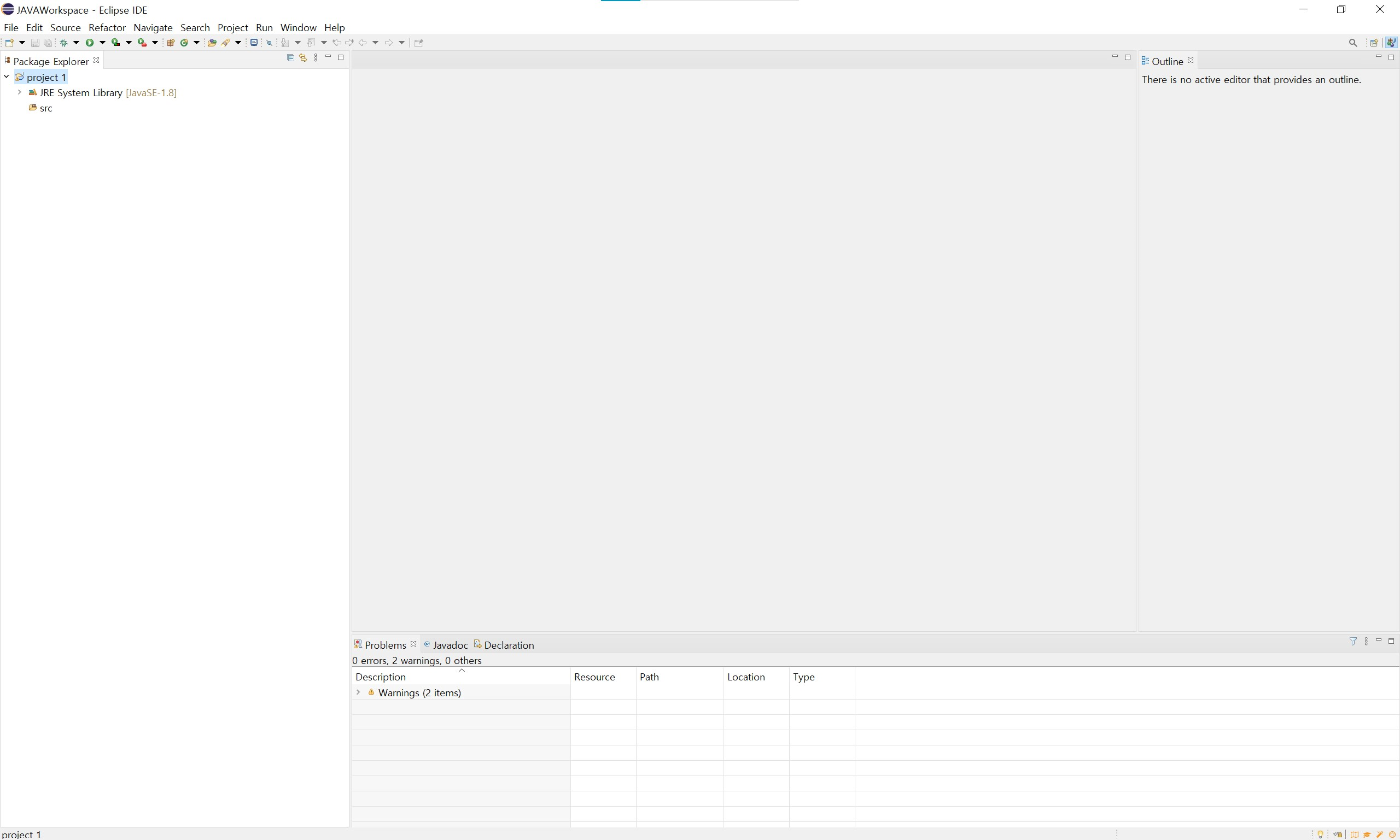 이클립스를 들어가 기본적으로 프로그램을 작성하려면 Java Project를 만들어줘야 합니다.