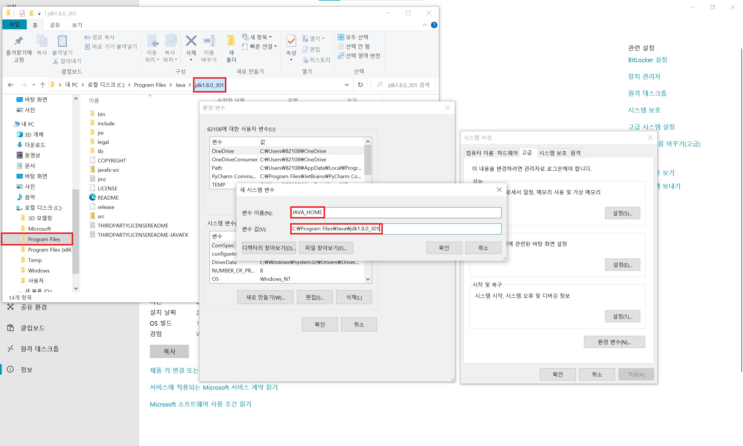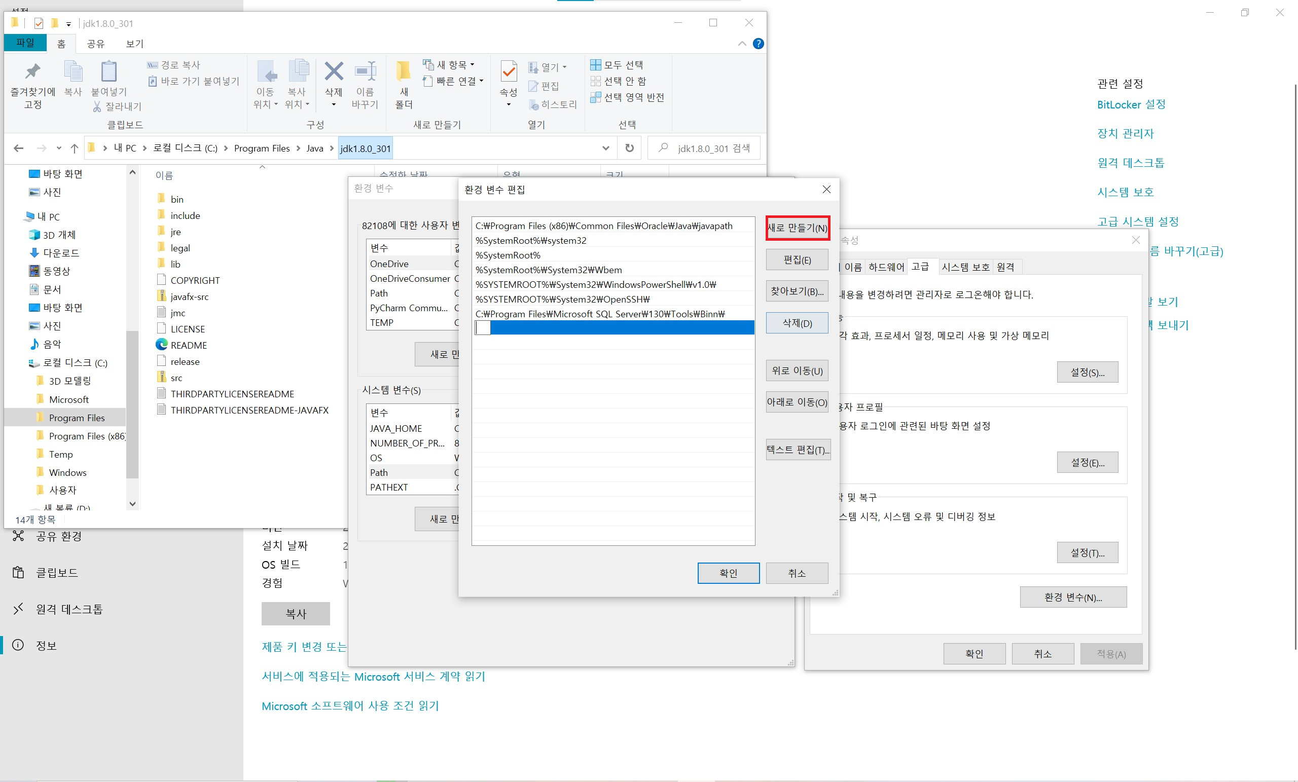 하여 JAVA_HOME 환경 변수를 만들고, JDK 설치 폴더를 등록하는 작업을 해줍니다.