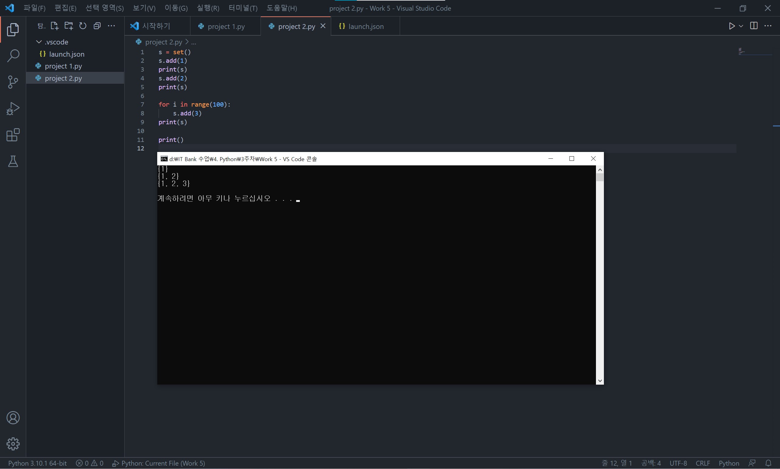 set에 원소를 추가할 때는 add() 함수를 사용합니다.