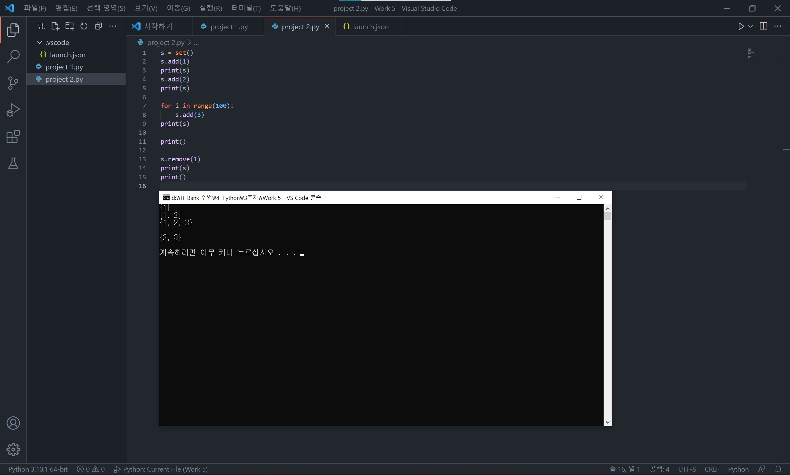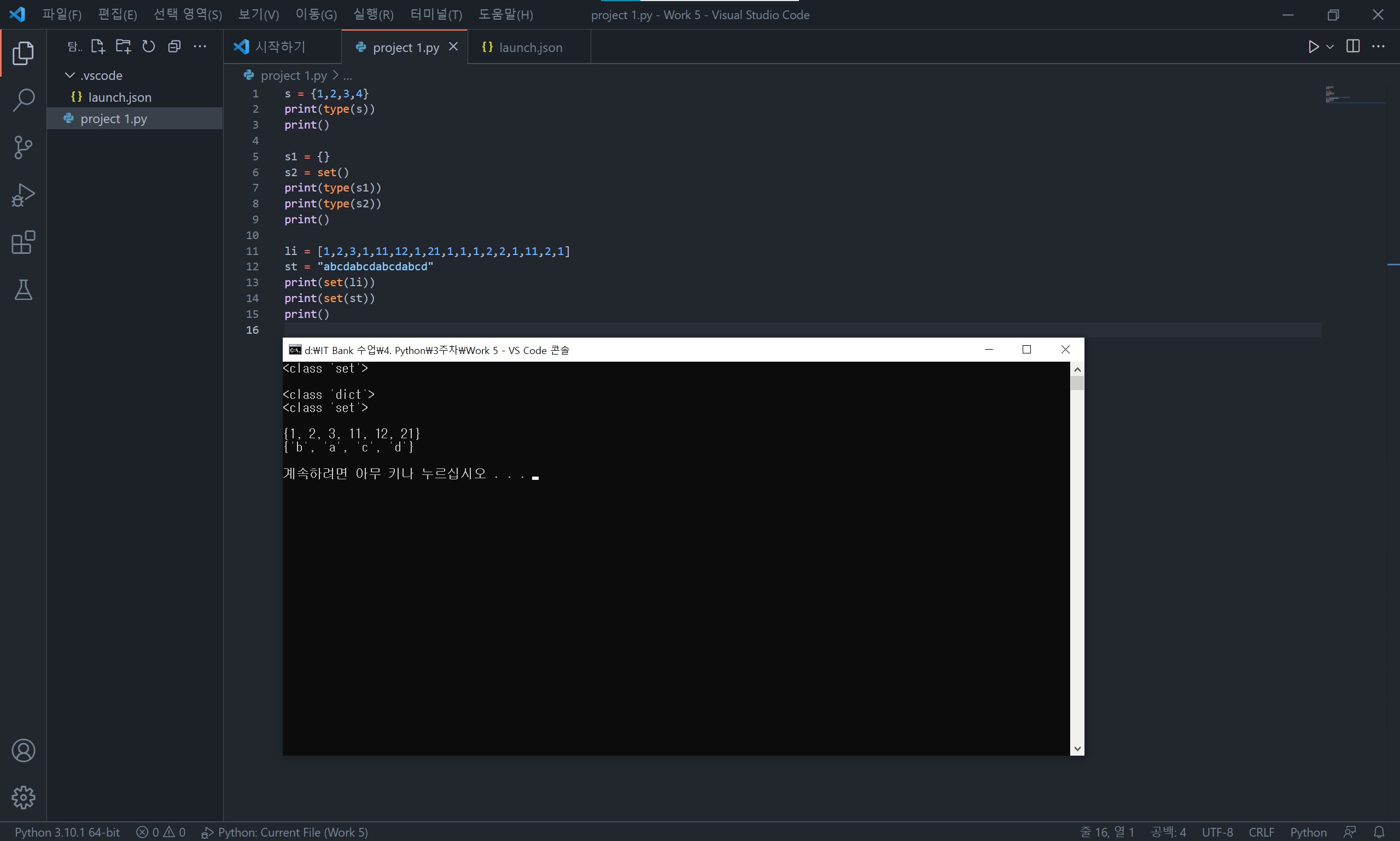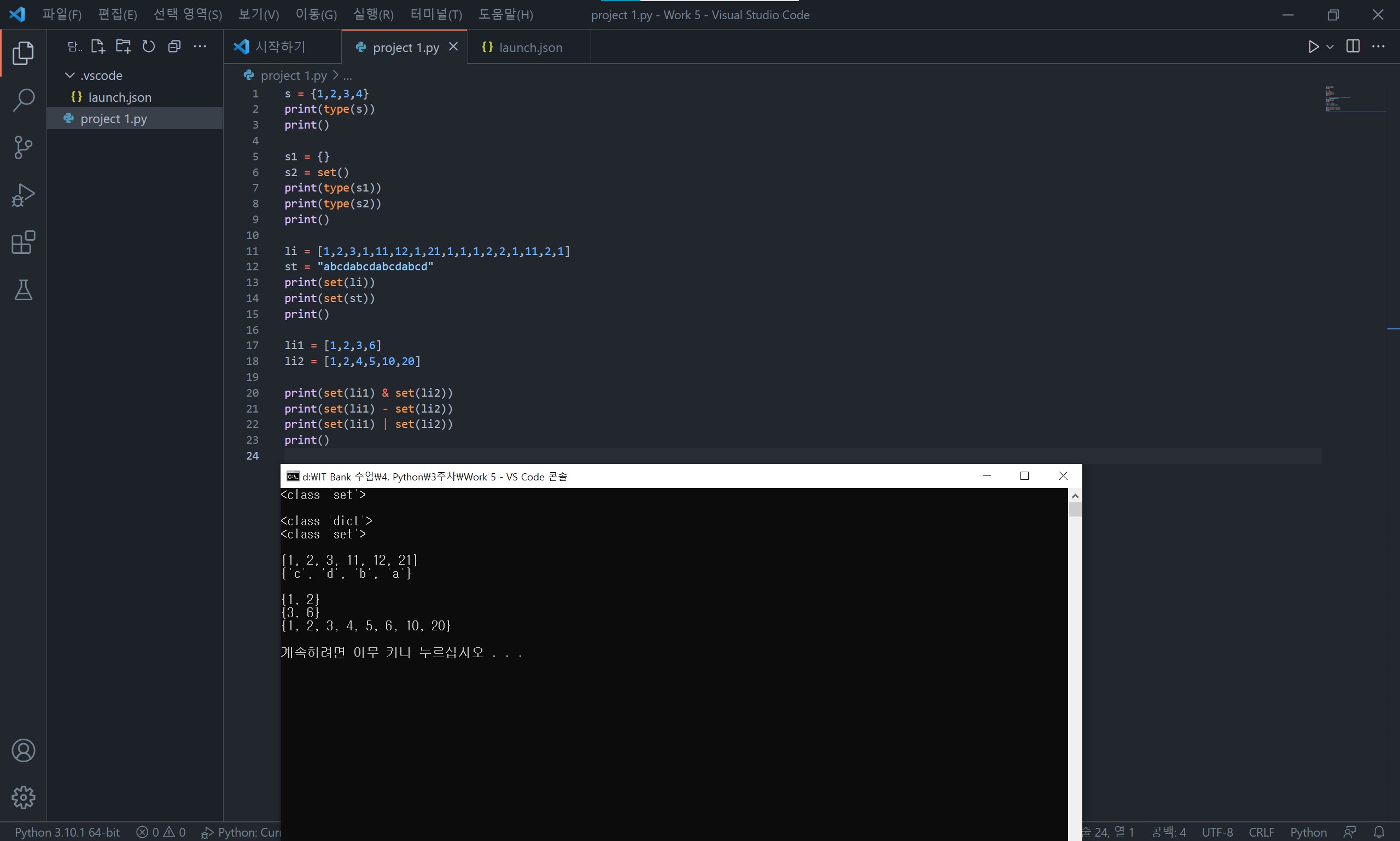 set는 교집합(&), 차집합(-), 합집합(|)과 같은 연산을 할 수 있습니다.