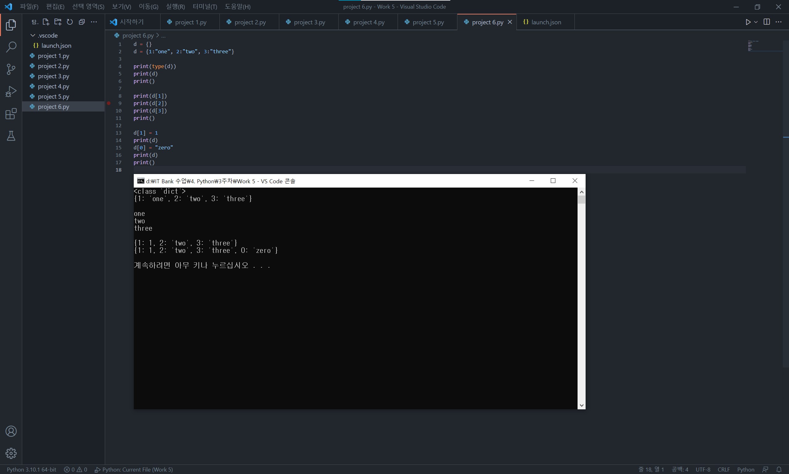 만약 기존 dictionary에서 존재하는 key 값에 value를 새로 매칭하여 주면 값이 수정됩니다.