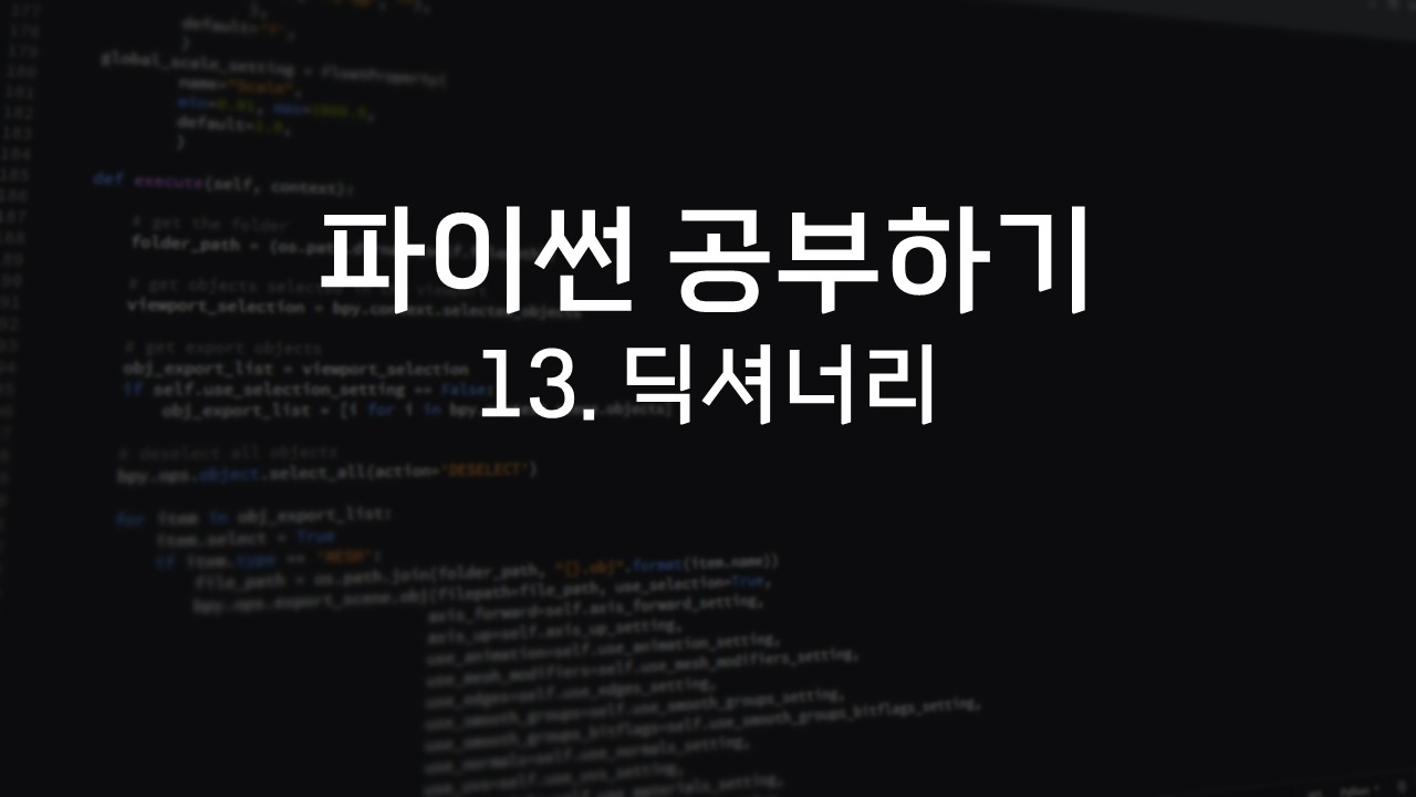 dictionary(딕셔너리)는 key와 value가 한 쌍을 이루어 저장된 자료로 set(세트)처럼 { }로 묶어서 나타낸 자료형입니다.