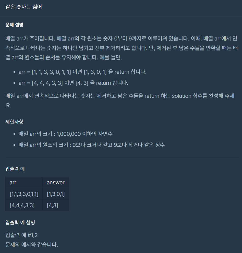- 입력받은 배열의 첫 번째 값은 무조건 결과에 들어가므로 추가해 준다. answer.append(arr[0])