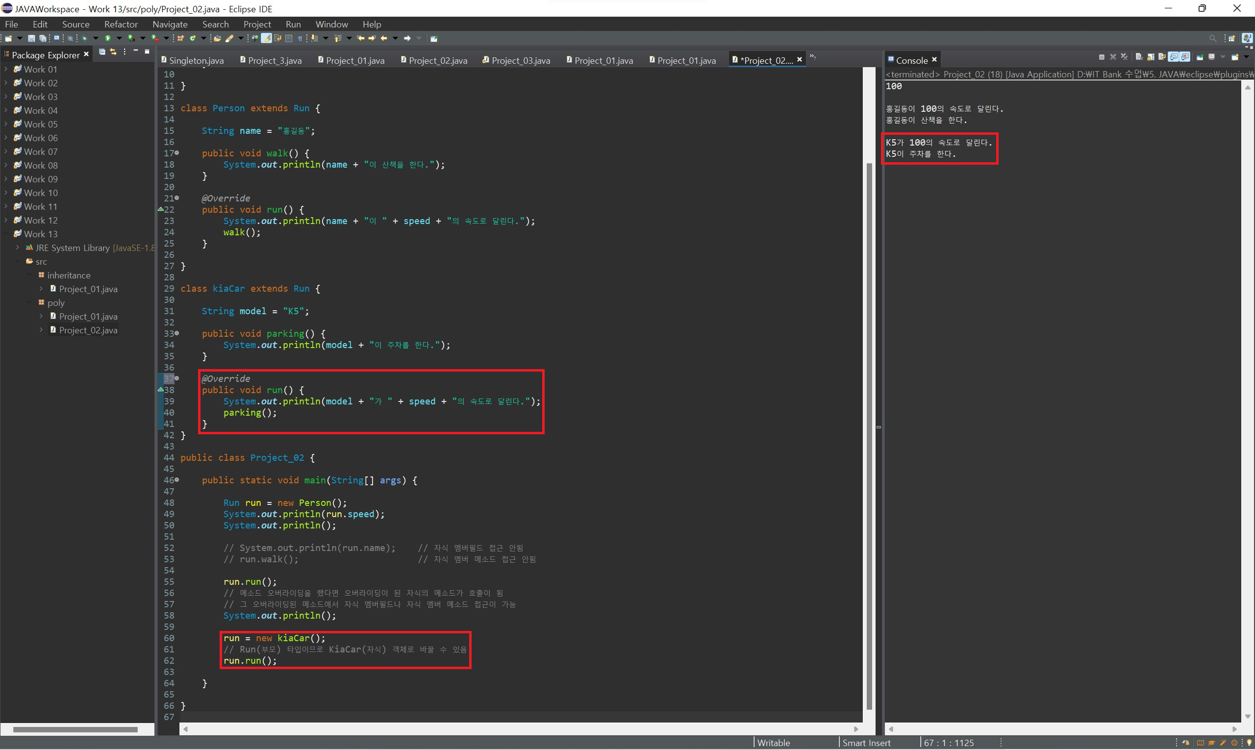 업캐스팅은 부모 타입 변수 = 자식 객체; 형식으로 작성할 수 있습니다.